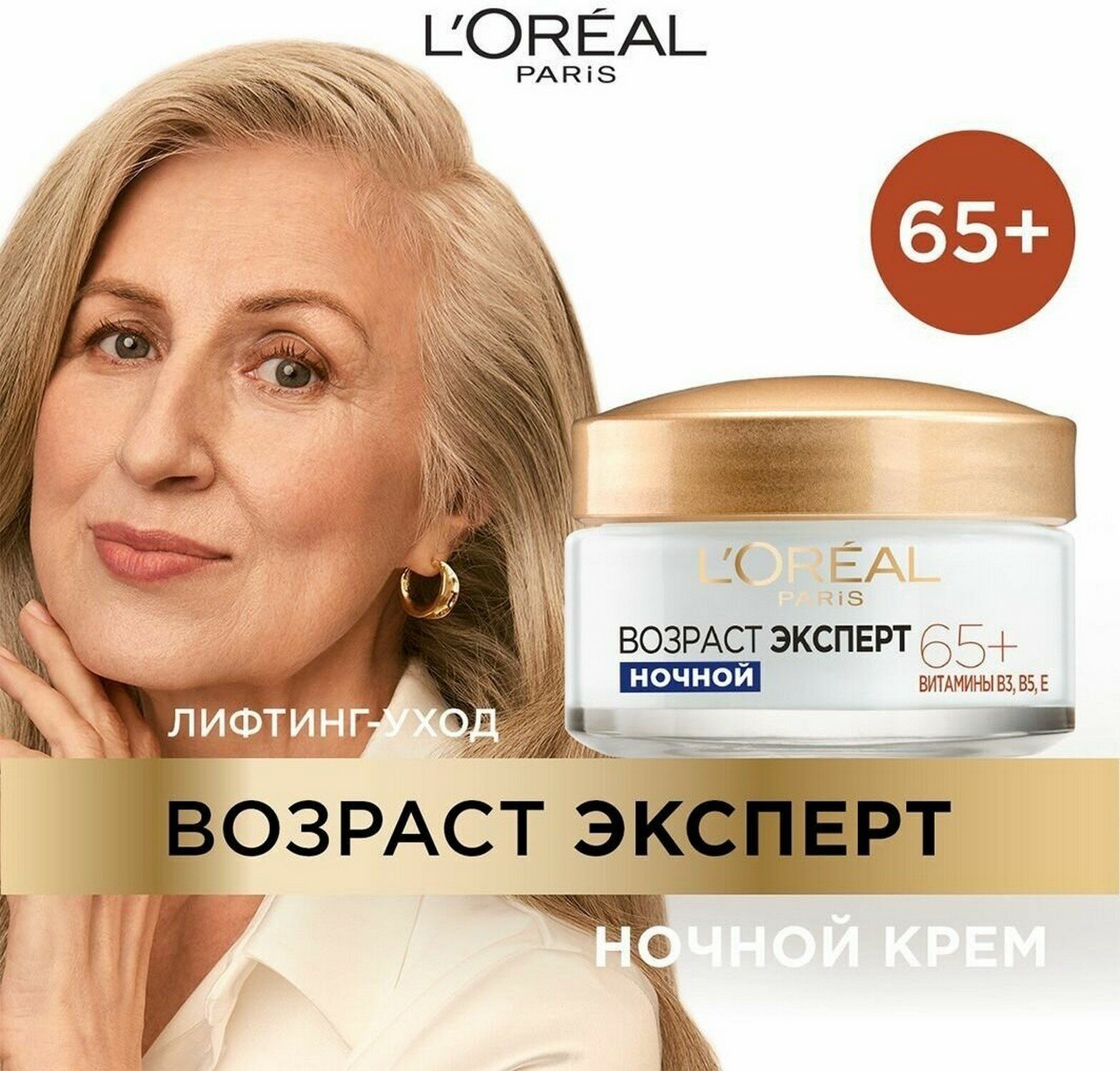 Купить L'Oreal Ночной крем "Возраст Эксперт 65+", против морщин, питательный, 50 мл