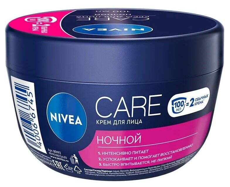 Ночной крем для лица Nivea Care Ночной крем для лица /100 мл/гр.