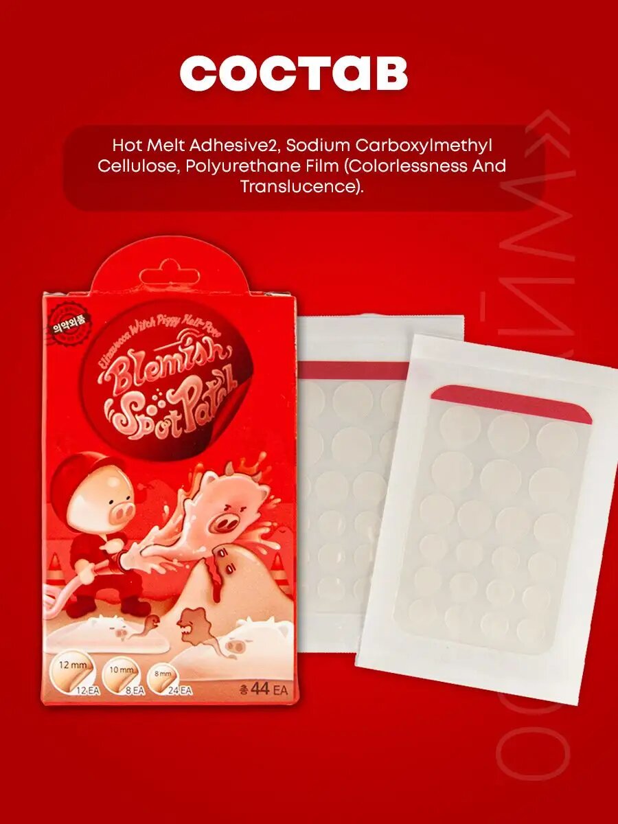 Elizavecca Патчи точечные от прыщей акне Witch Piggy Hell Pore Blemish Spot Patch, гидроколлоидные, 1 упаковка 44 штук