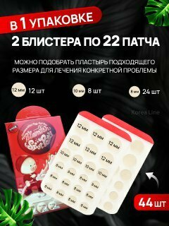 Точечные патчи от прыщей из Кореи, 44 штуки в упаковке