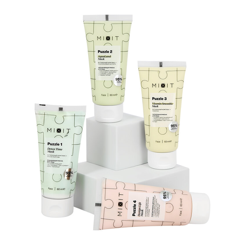 MIXIT Набор уходовой косметики для лица: маска глиняная питательная и очищающая Mask Puzzle