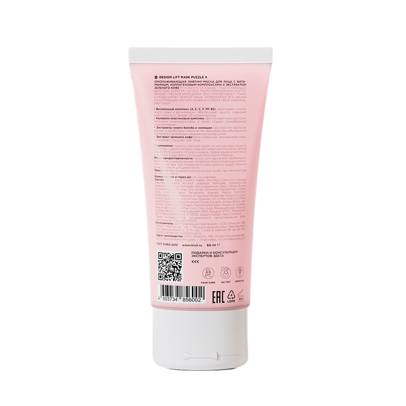 Купить Лифтинг-маска для лица MIXIT PUZZLE 4 с витаминным и коллаген-эластиновым комплексом 60 мл