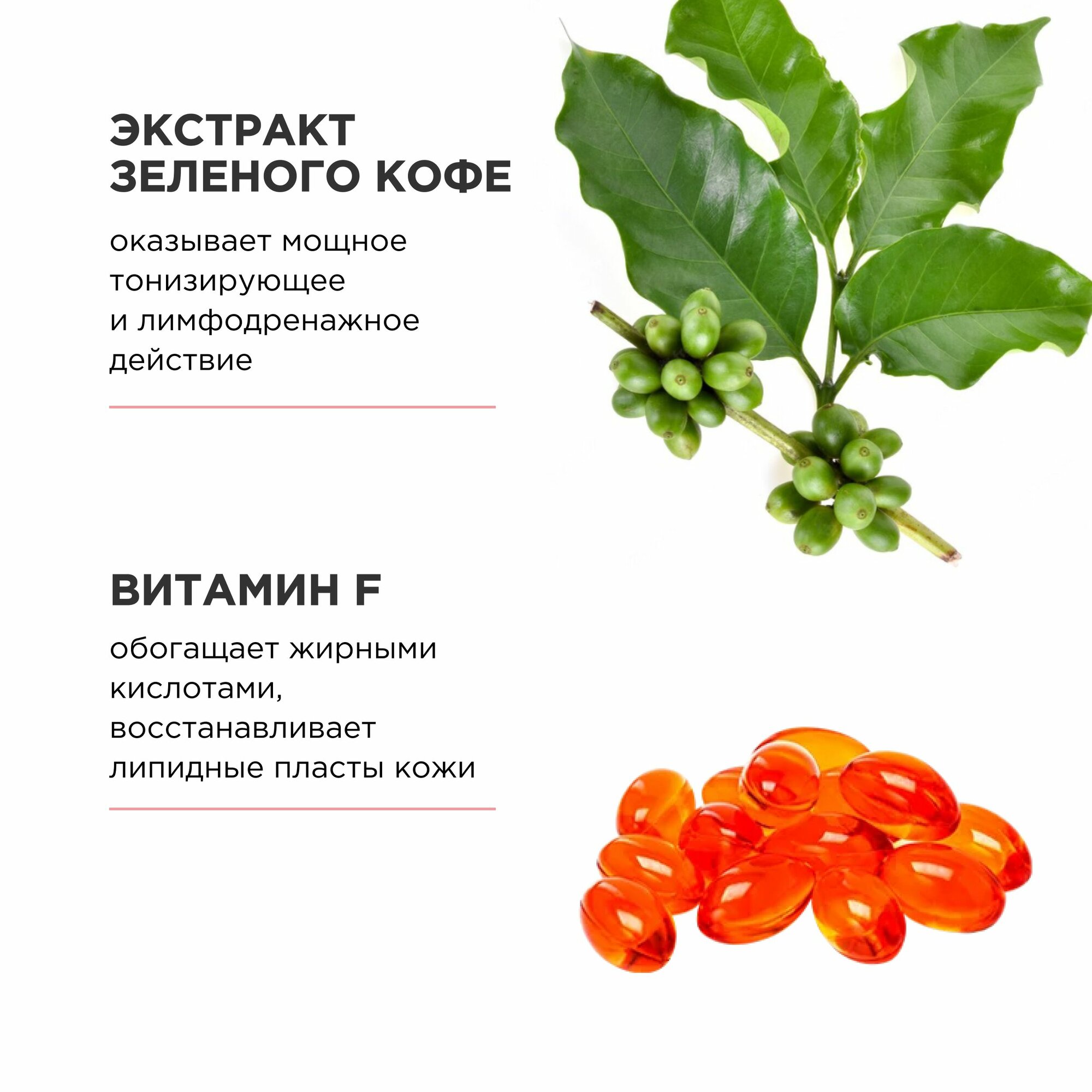 | Активный ингредиент | AHA-кислоты / витамин A (ретинол) / витамин C / витамин E / витамин F / гиалуроновая кислота / глина / коллаген / липоевая кислота / мед / медь / морские водоросли / пантенол (провитамин B5) / сквалан / цинк / эластин |