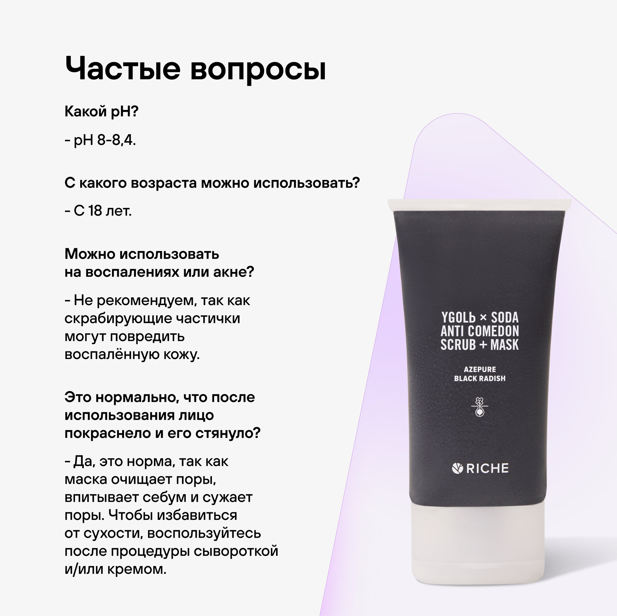СохранитьRICHE Скраб - маска для лица с содой и углем Уходовая косметика для ухода за лицом от черных точек Рише интересное: