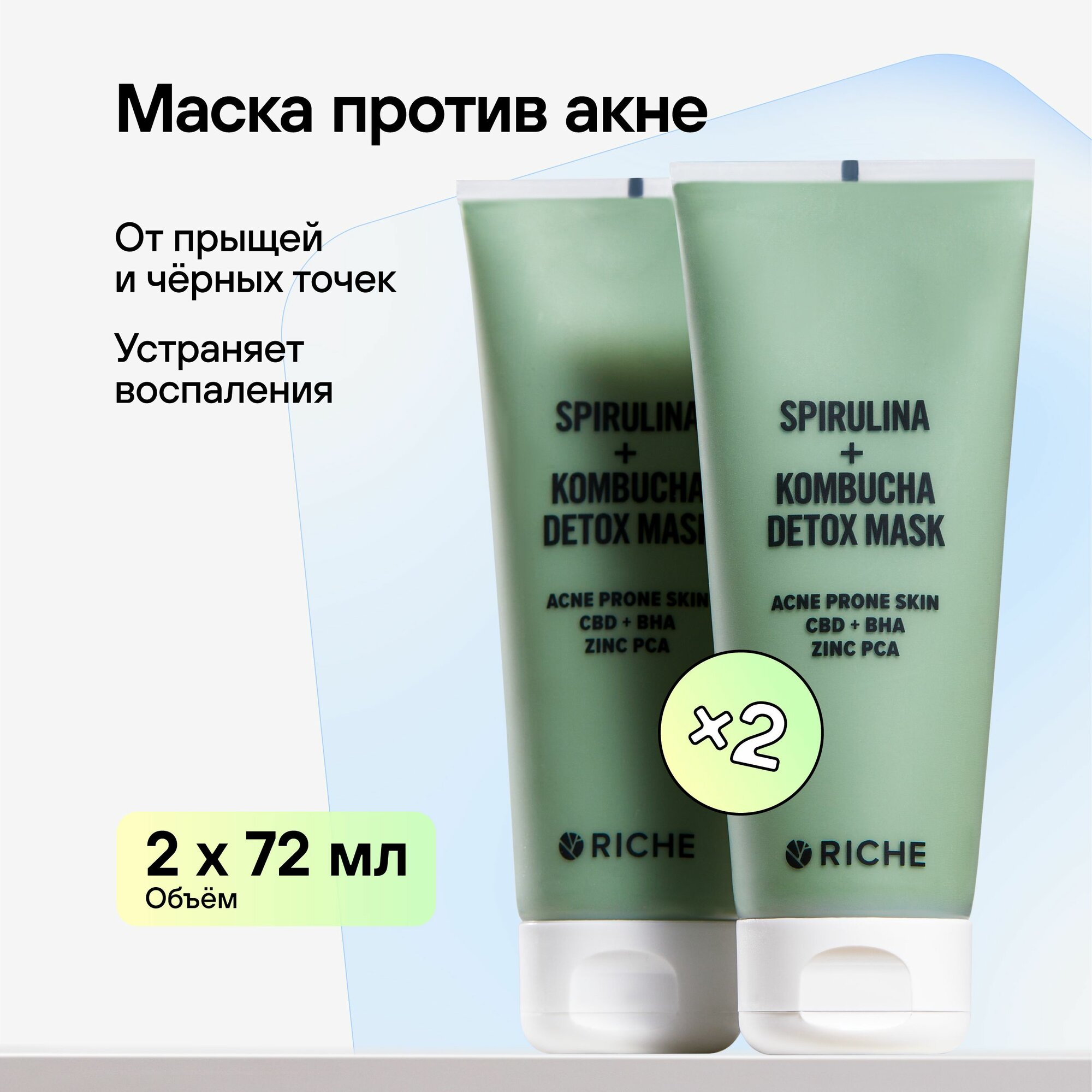 Купить RICHE Очищающая маска для лица от прыщей и черных точек Шпинат + Спирулина 2 шт Рише