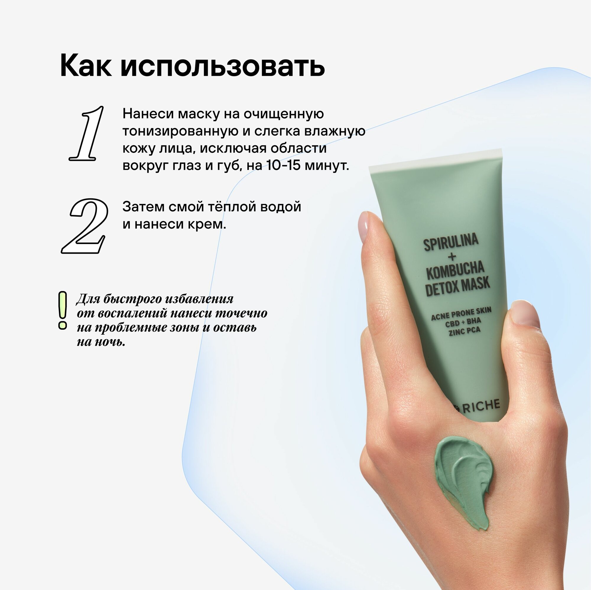 СохранитьRICHE Очищающая маска для лица от прыщей и черных точек Шпинат + Спирулина 2 шт Рише интересное: