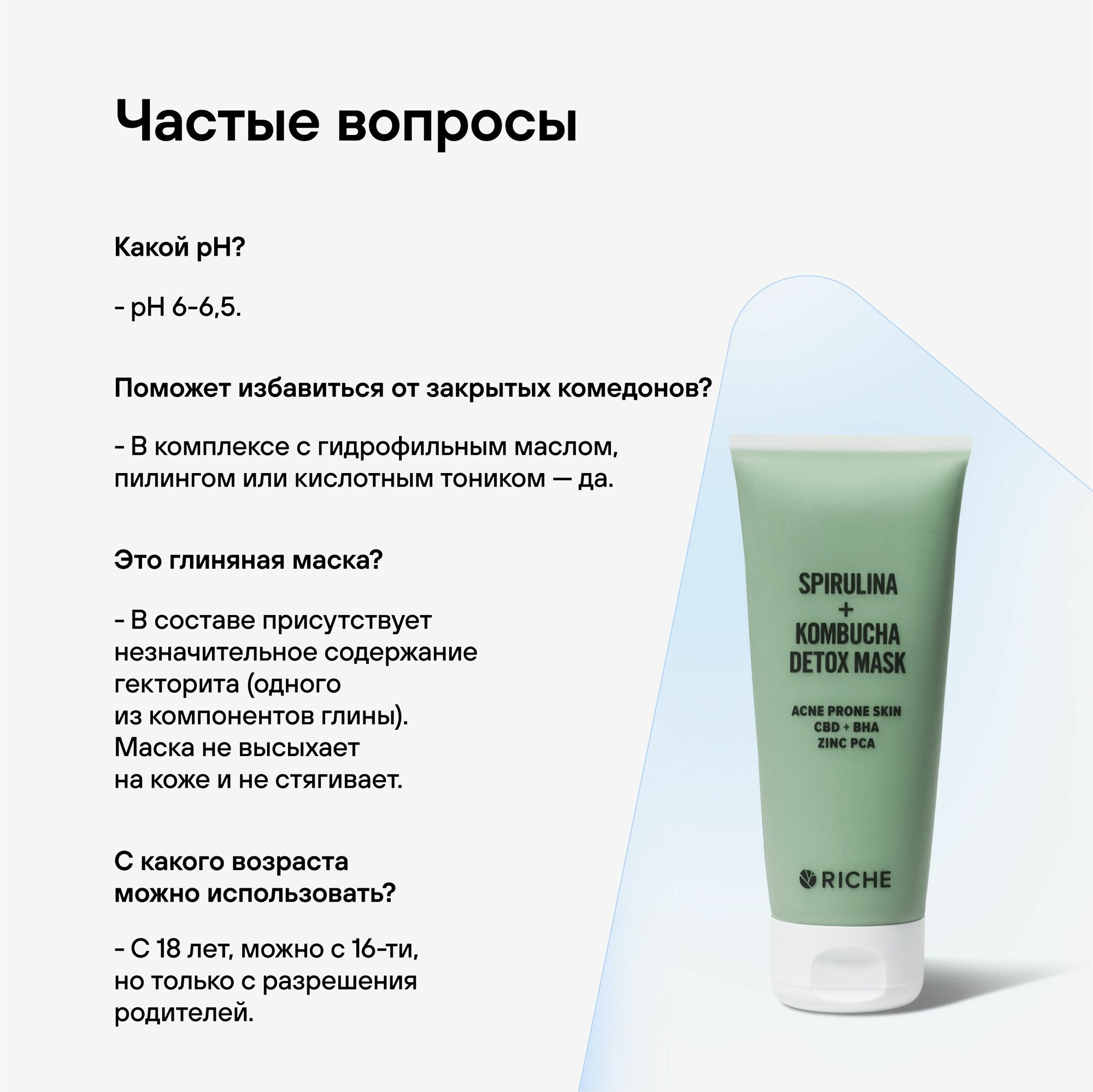 RICHE Очищающая маска для лица от прыщей и черных точек Шпинат + Спирулина Рише