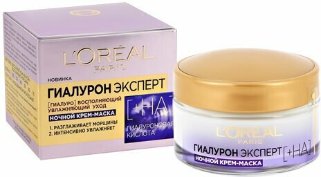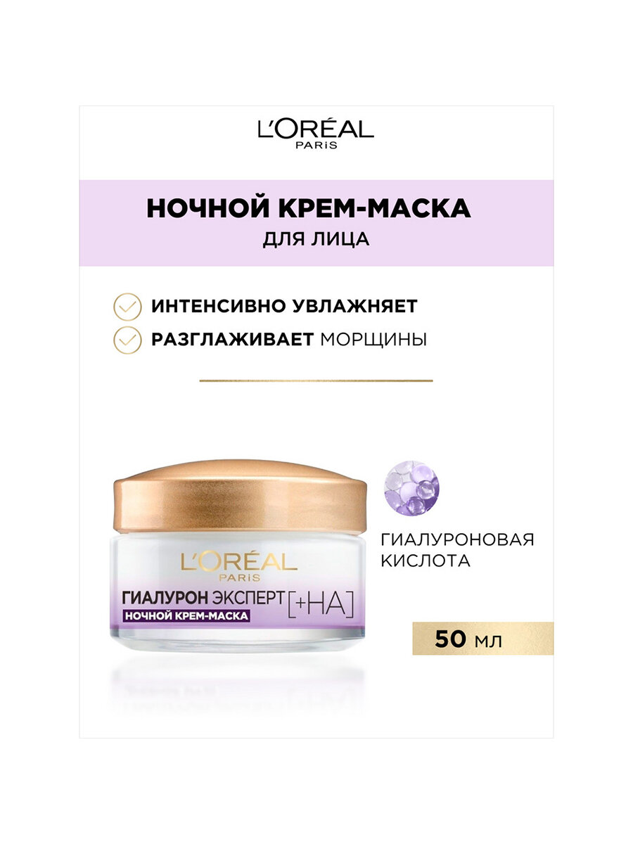 Loreal Гиалурон Эксперт Ночная крем-маска для лица с гиалуроновой кислотой 50 мл 1 шт