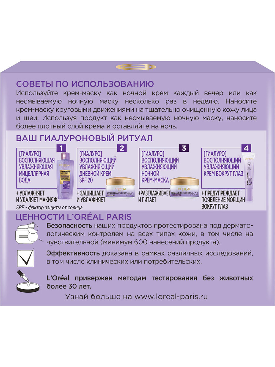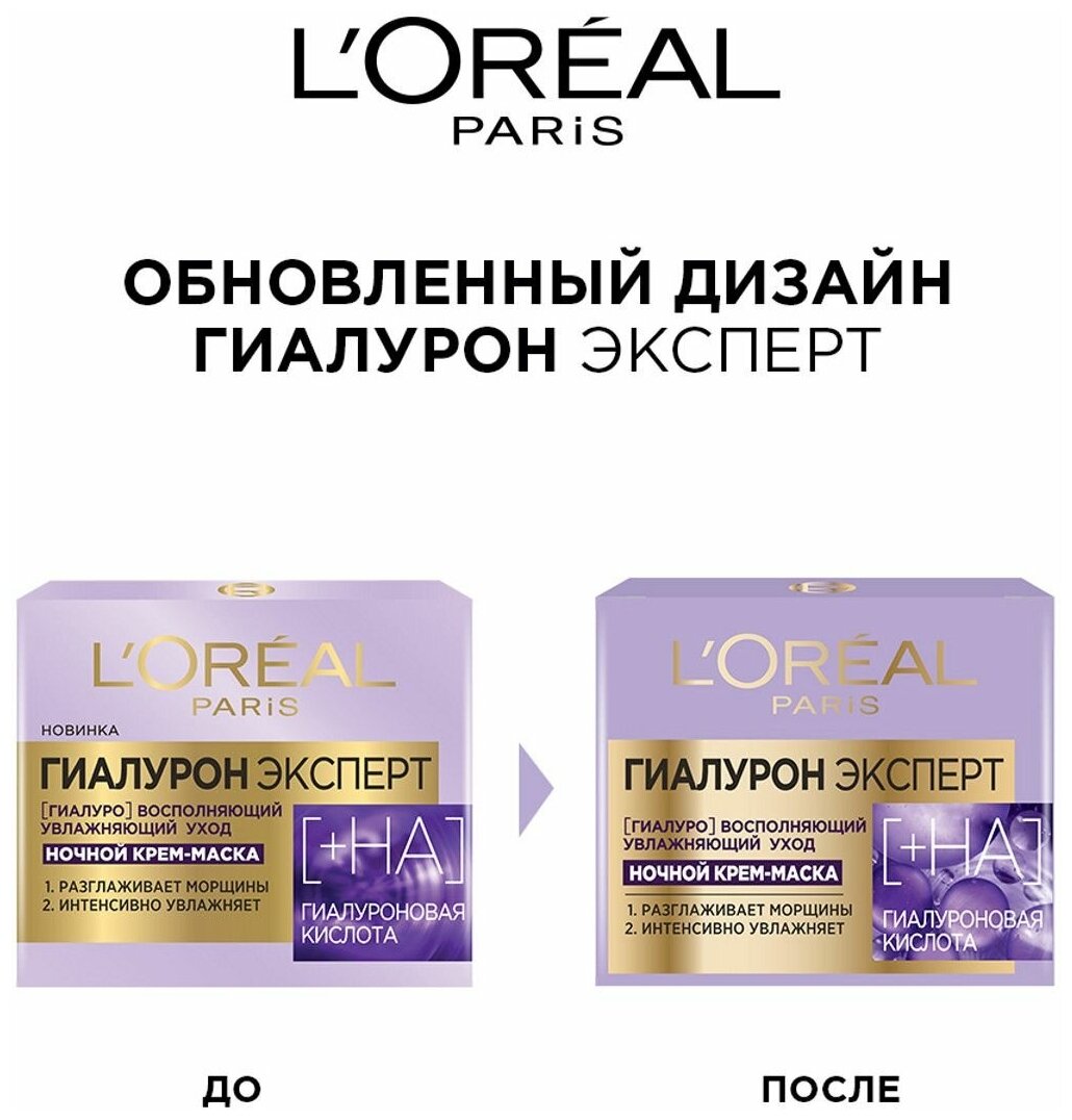 L'Oreal Paris крем-маска ночная увлажняющая Гиалурон Эксперт, 50 г, 50 мл интересное: