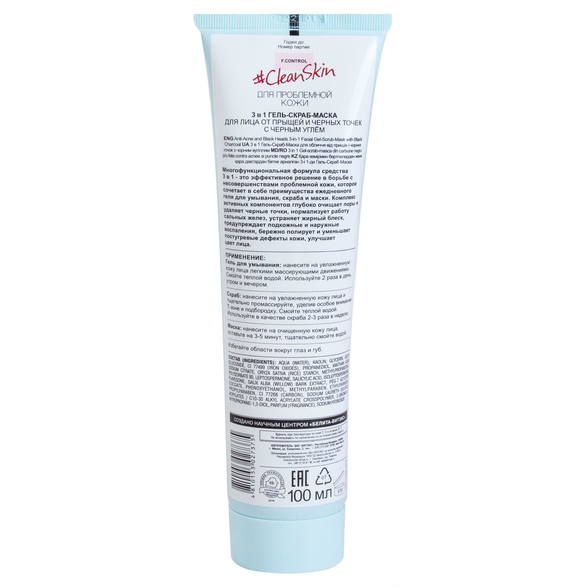 Витэкс F Control Clean Skin 3 в 1 гель-скраб-маска для лица от прыщей и черных точек с черным углём 100 мл интересное: