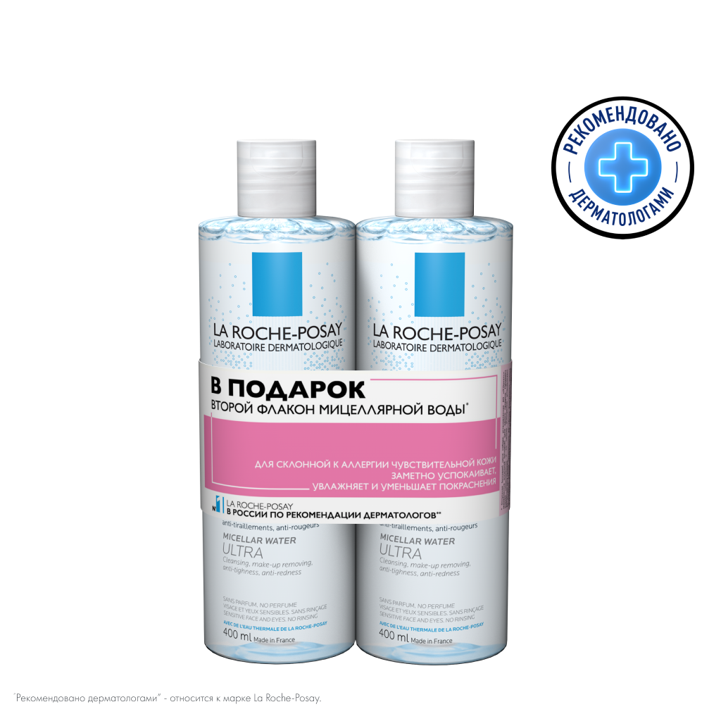 Купить Мицеллярная вода LA Roche-posay LA-ROCHE-POSAY Physiological Cleansers Ultra для чувствительной, склонной к аллергии кожи, 2х400 мл