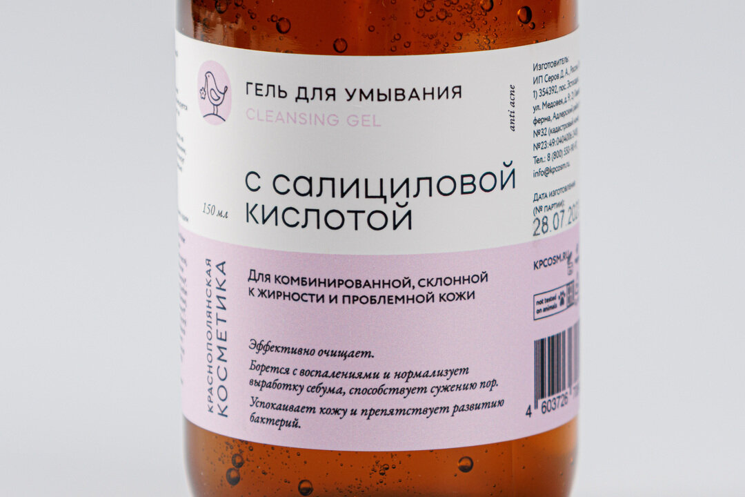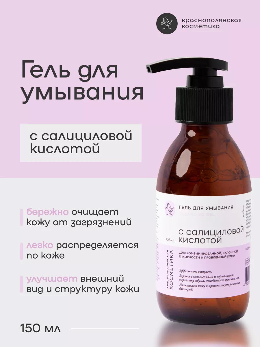 Гель для умывания для лица с салициловой кислотой, 150 мл, Краснополянская косметика