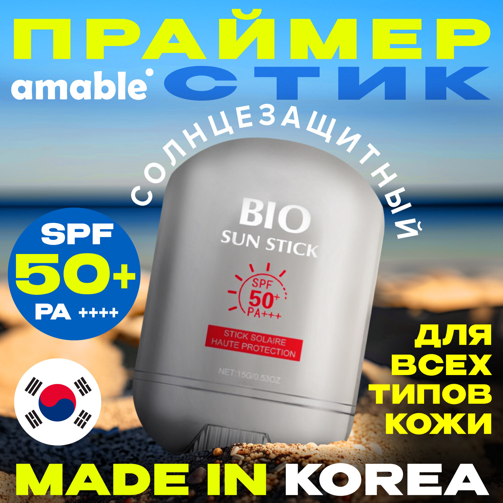 Крем-стик солнцезащитный увлажняющий для лица и тела amable SPF50. Корейские технологии интересное: