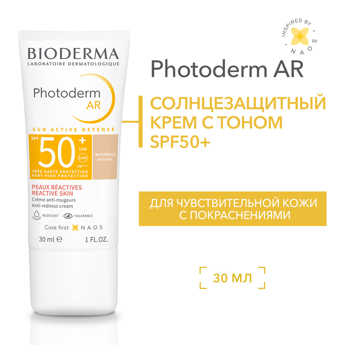 Крем BIODERMA Солнцезащитный с тоном для кожи с покраснениями AR SPF50+, 30 мл