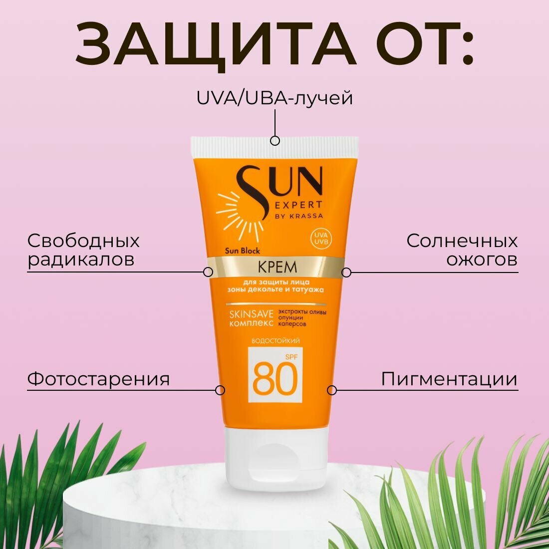 Солнцезащитный крем для лица, зоны декольте и татуажа от загара от солнца SUN EXPERT by KRASSA SPF 80 Sun Block, 50 мл интересное: