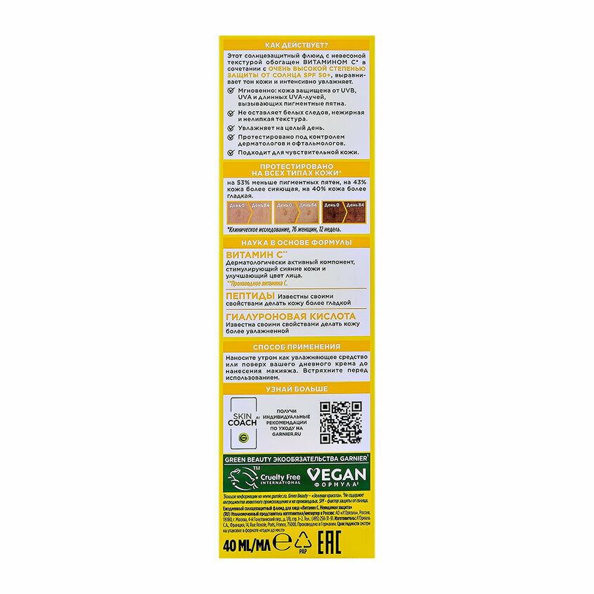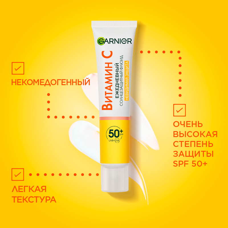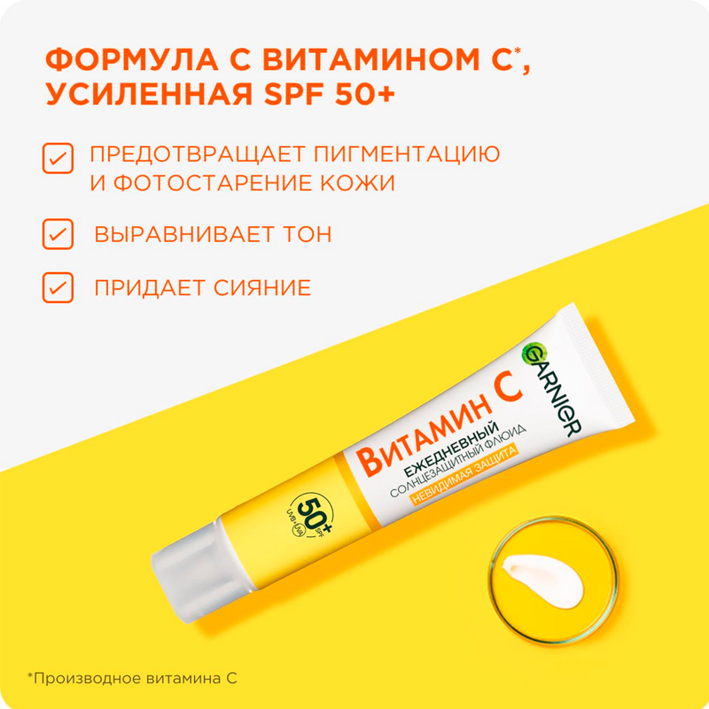 Флюид для лица Garnier "Витамин С", Невидимая защита, SPF 50, 40 мл (C6996300)