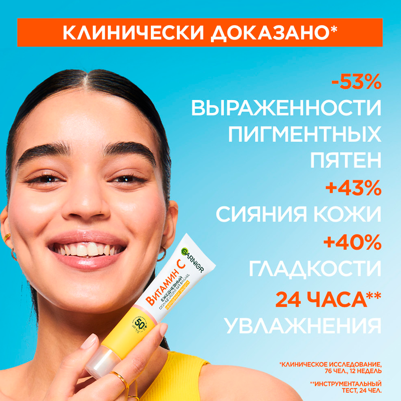 GARNIER Флюид для лица ежедневный тонирующий солнцезащитный Витамин С Невидимая Защита, 40 мл
