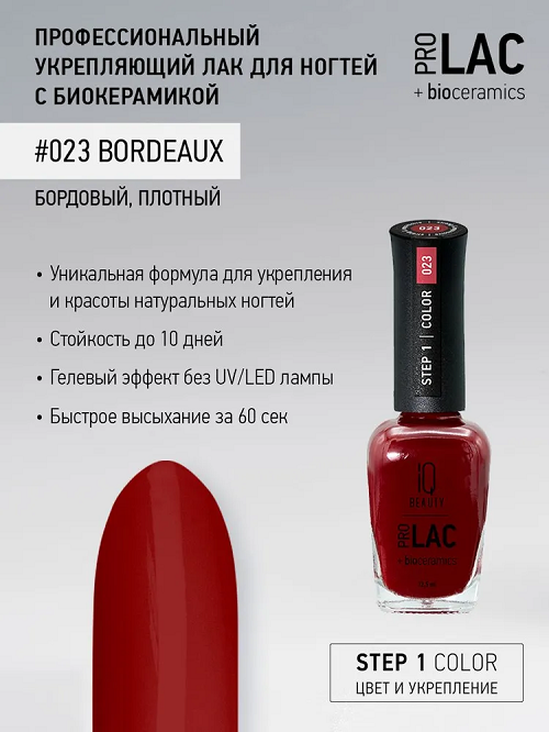 Купить Лак для ногтей IQ Beauty PROLAC+bioceramics укрепляющий 023 Bordeaux, 12.5 мл