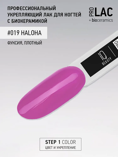 IQ Beauty №019 Haloha - Айкью Бьюти Лак для ногтей профессиональный укрепляющий с биокерамикой №019 (фуксия), 12,5 мл -