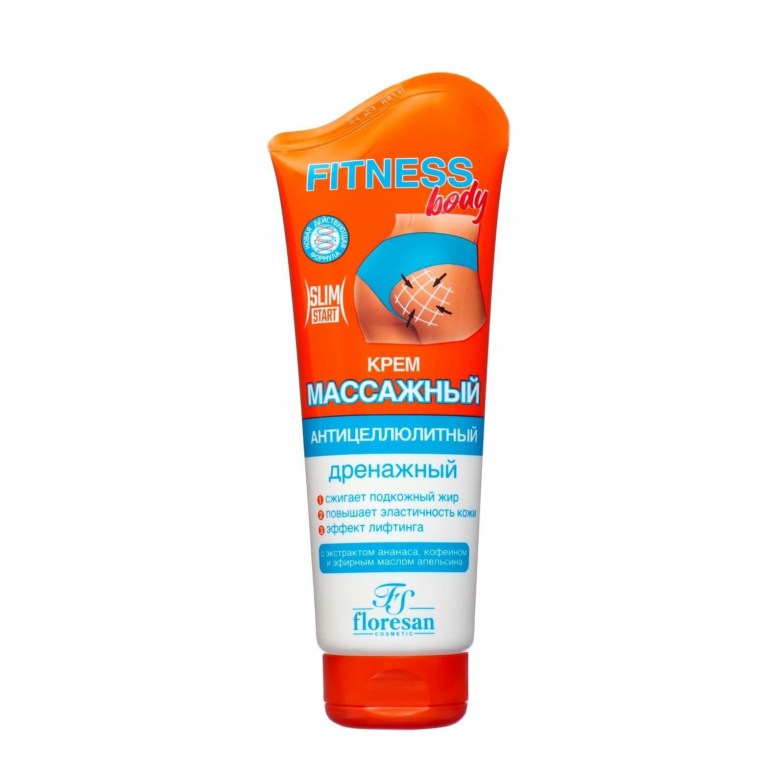 Купить Крем массажный антицеллюлитный дренажный с экстрактом ананаса, кофеином и эфирным маслом апельсина Fitness body 200 мл
