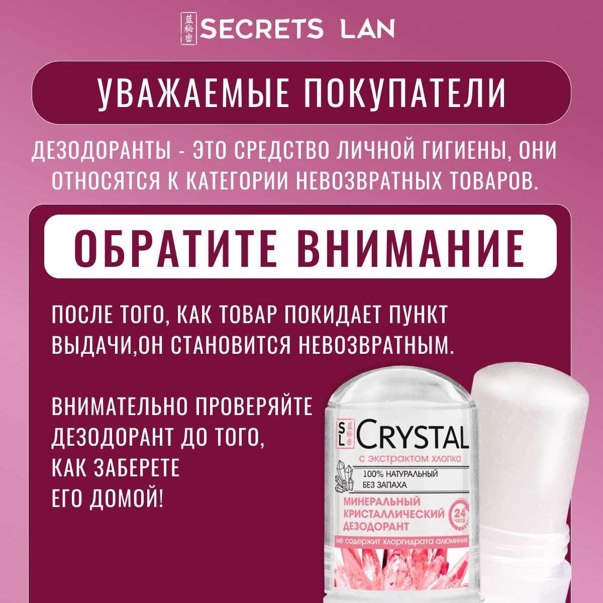 Ниже Вы можете прочитать отзывы на Дезодорант минеральный Secrets Lan твердый кристалл с экстрактом хлопка 2 шт, ознакомится с подробными характеристиками, посмотреть интересные обзоры и фотографии на Дезодорант минеральный Secrets Lan твердый кристалл с экстрактом хлопка 2 шт.