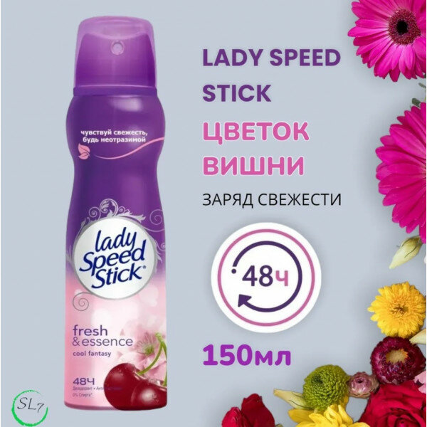 Дезодорант женский антиперспирант спрей Lady Speed Stick Fresh & Essence Cool Fantasy Цветок Вишни, 150 мл