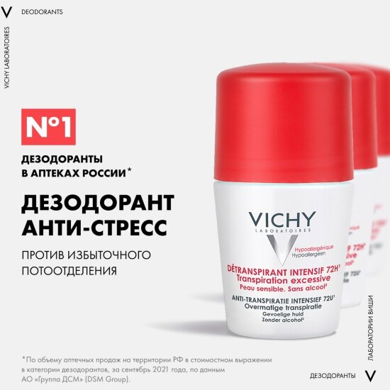 Дезодорант-антиперспирант шариковый Vichy Антистресс 72 часа защиты, 50мл интересное: