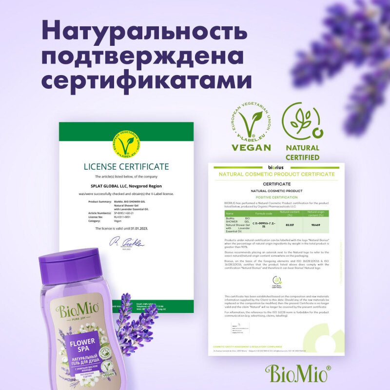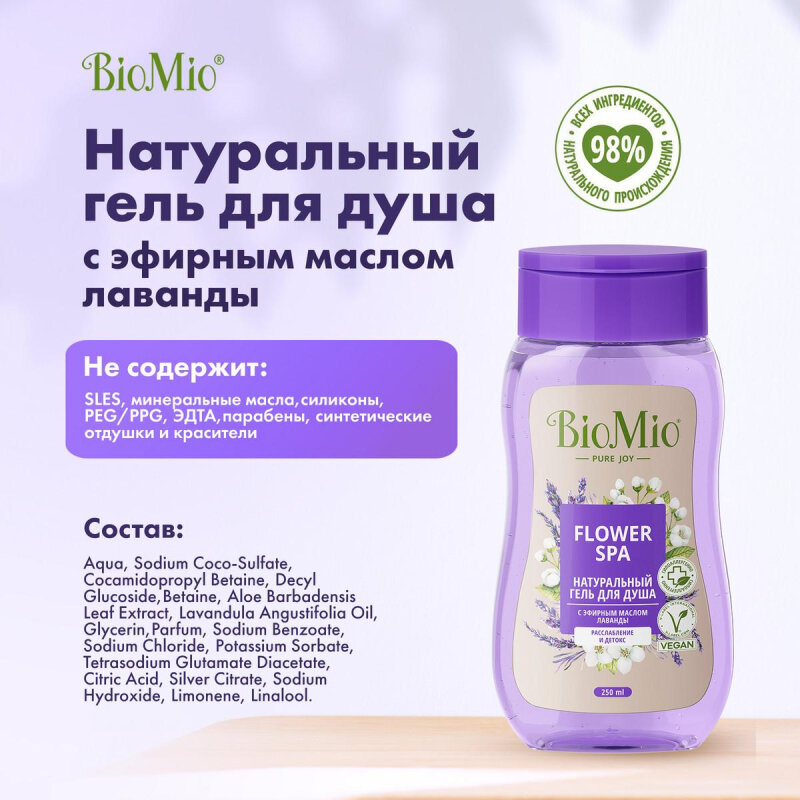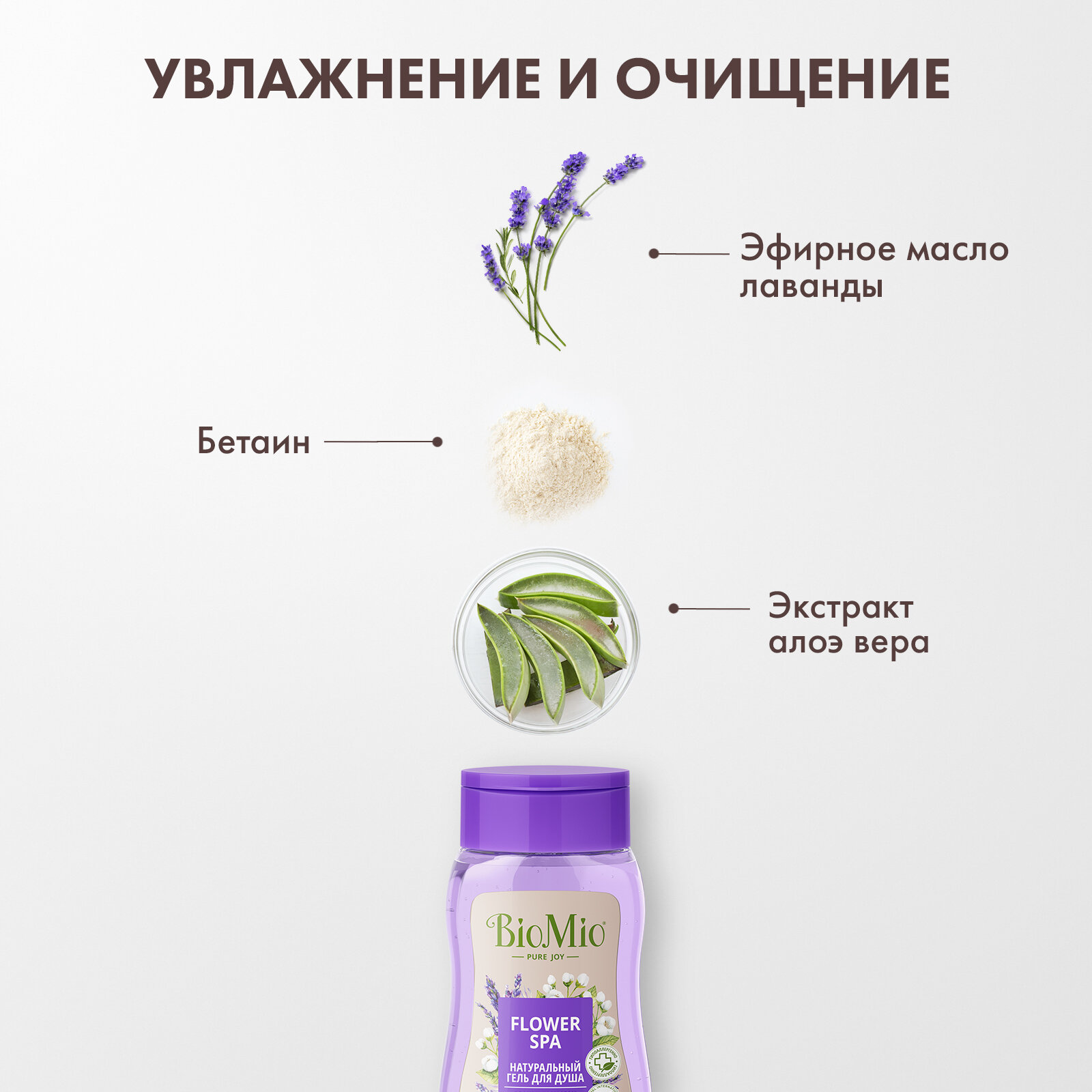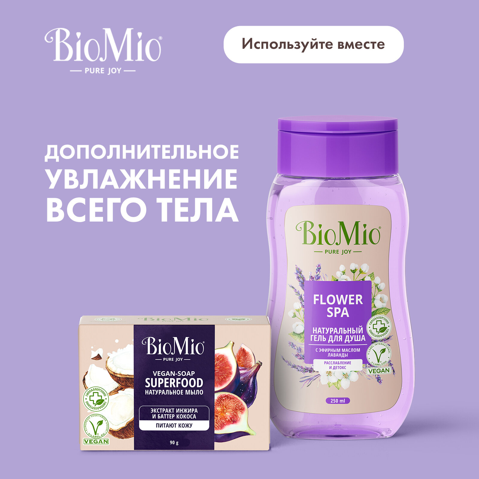 Гель для душа натуральный BioMio Bio Shower Gel "Flower Spa" с эфирным маслом лаванды, расслабление и детокс, 250 мл.