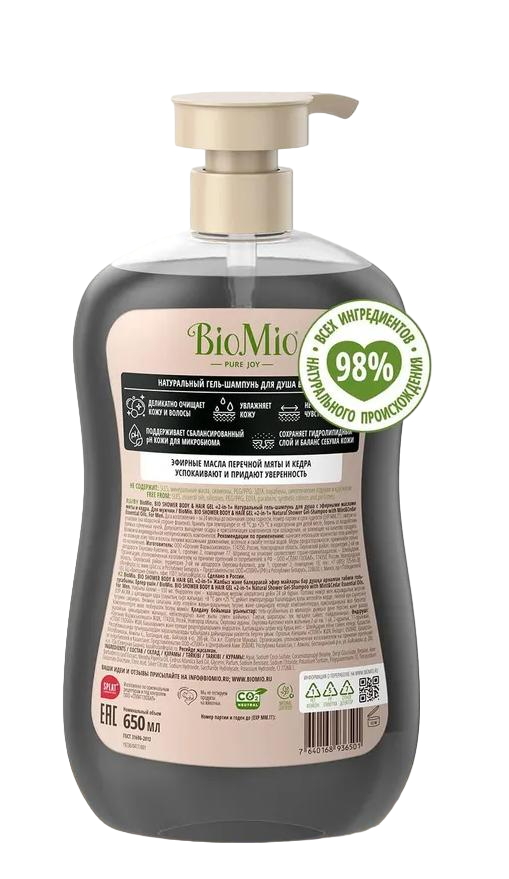 Купить Гель- шампунь для душа BioMio BIO SHOWER BODY&HAIR GEL Мята и кедр С, дозатор, 650 мл, 3 шт