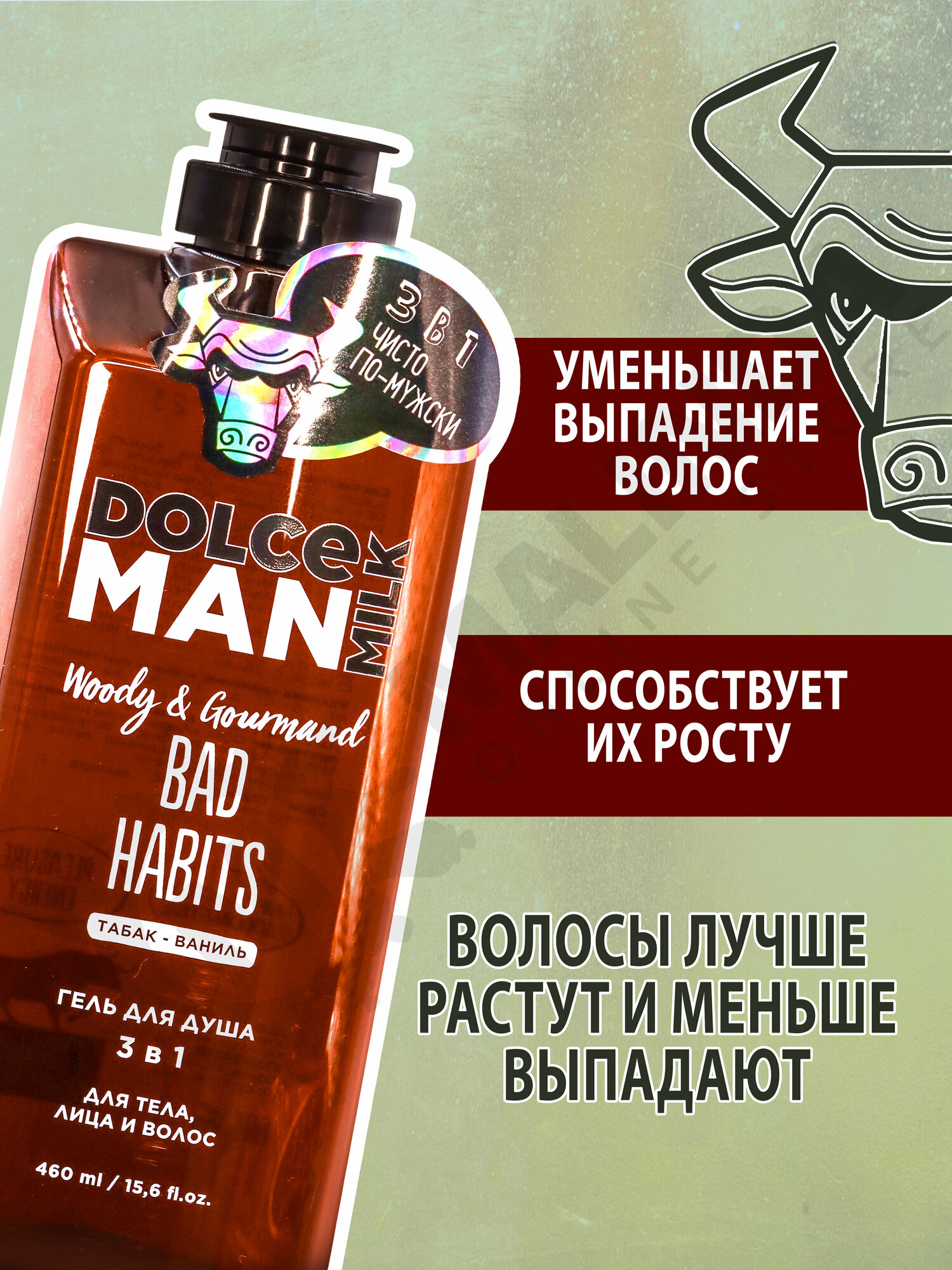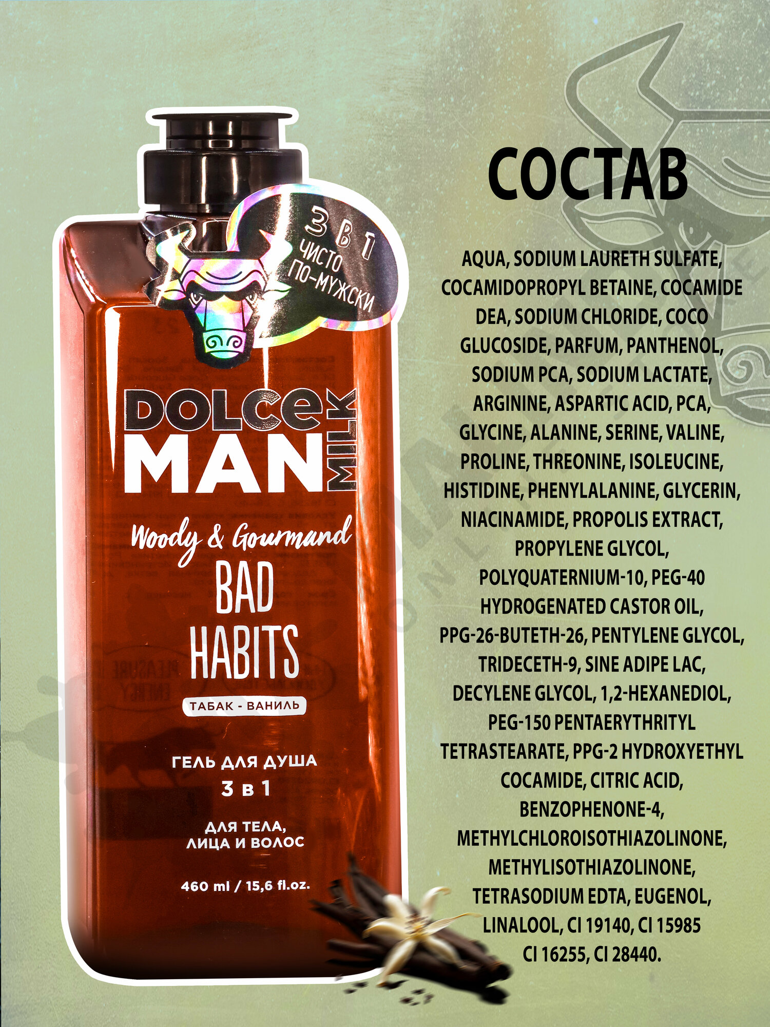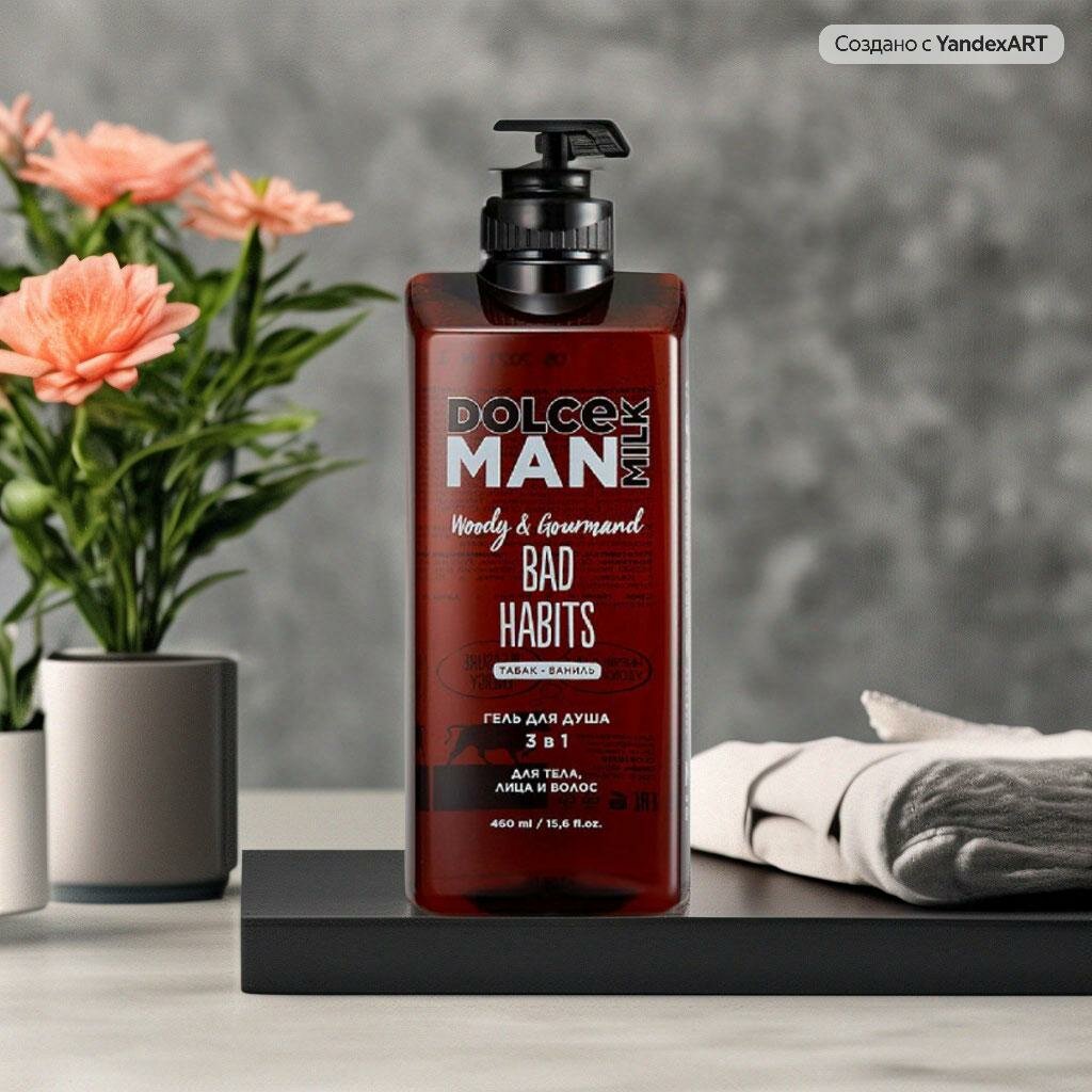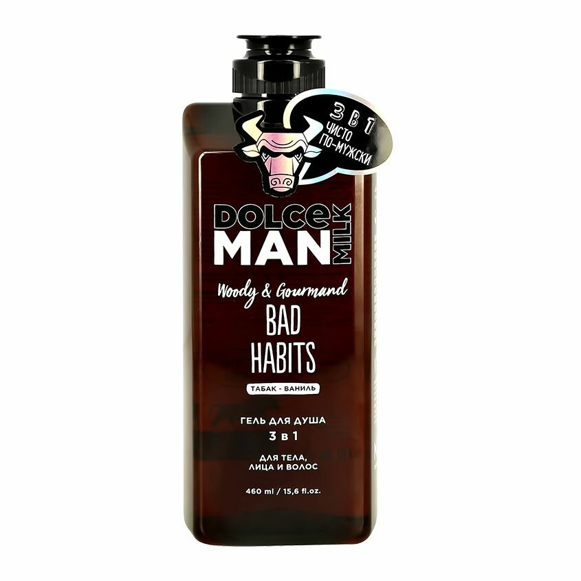 DOLCE MILK Гель для душа 3 в 1 «ВРЕДНЫЕ ПРИВЫЧКИ», 460 мл, мужской, для всех типов