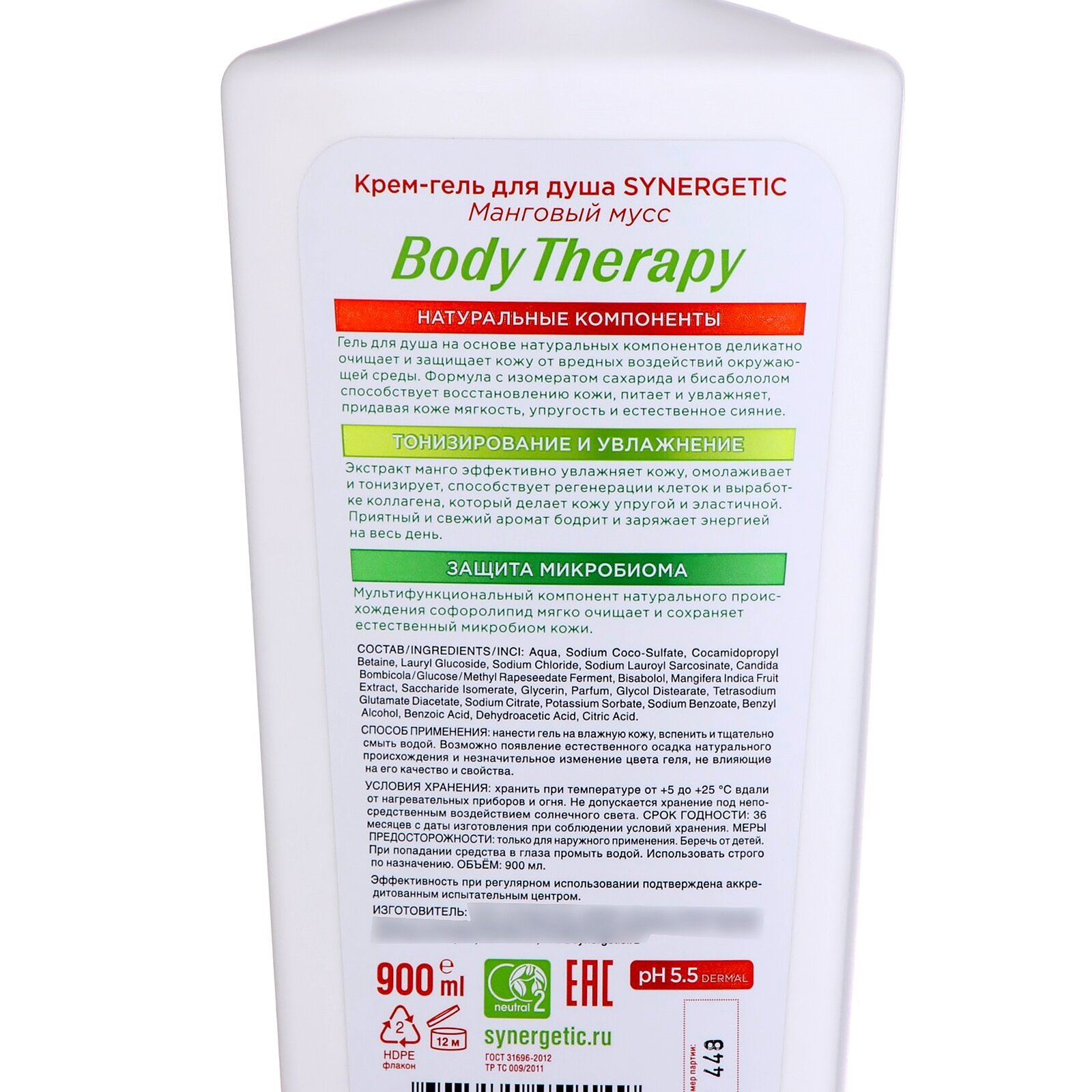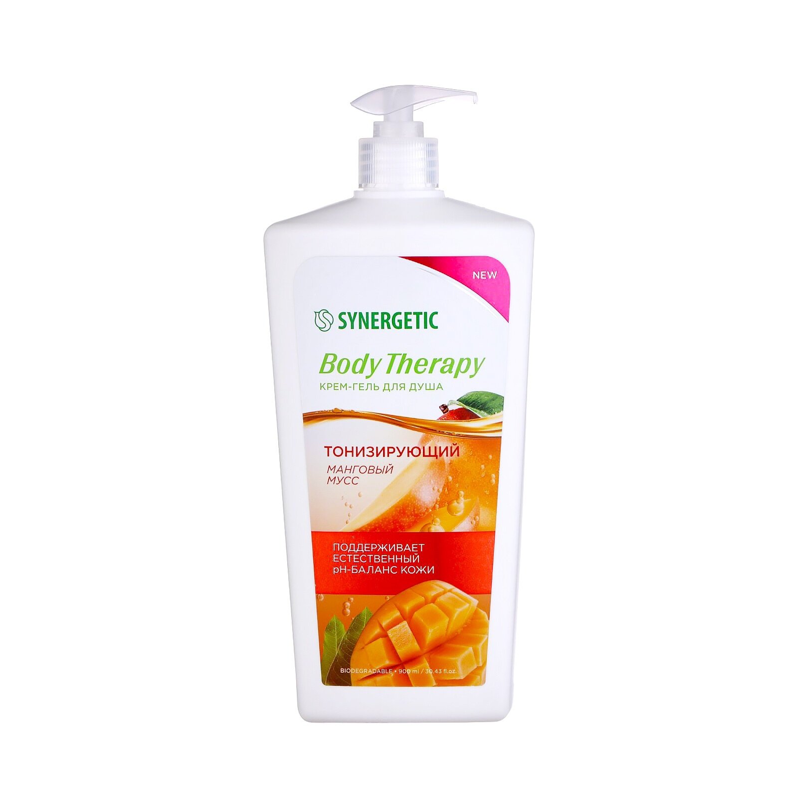 Крем-гель для душа SYNERGETIC "Body Therapy" манговый мусс, 900 мл