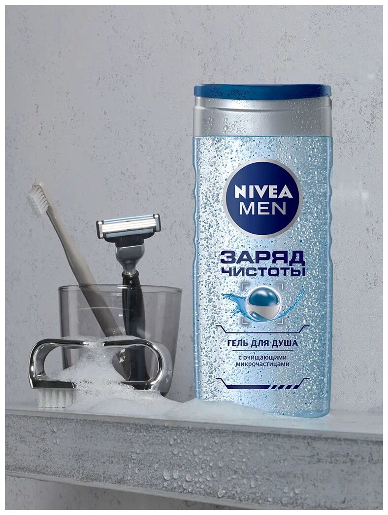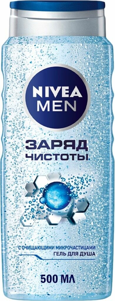 Гель для душа мужской NIVEA MEN "Заряд чистоты" с очищающими микрочастицамиарктическая свежесть, 250 мл, 285 г