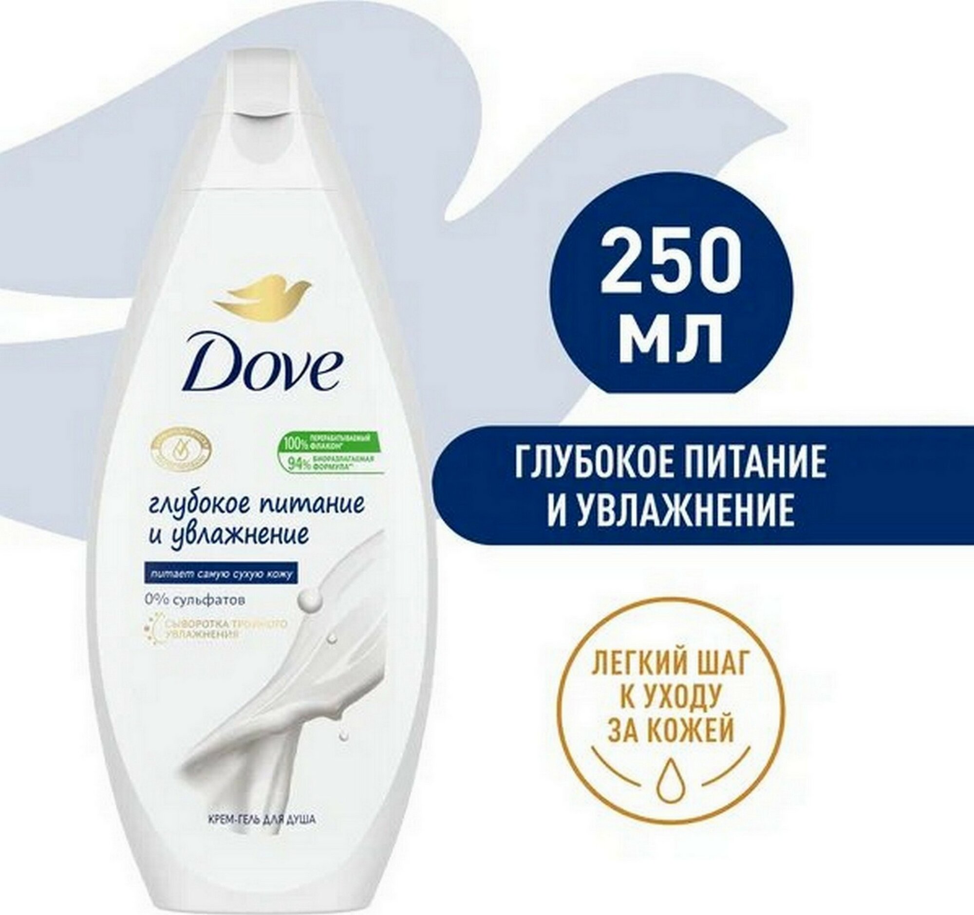 Dove бессульфатный крем-гель для душа Глубокое питание и увлажнение 250 мл - 1 шт