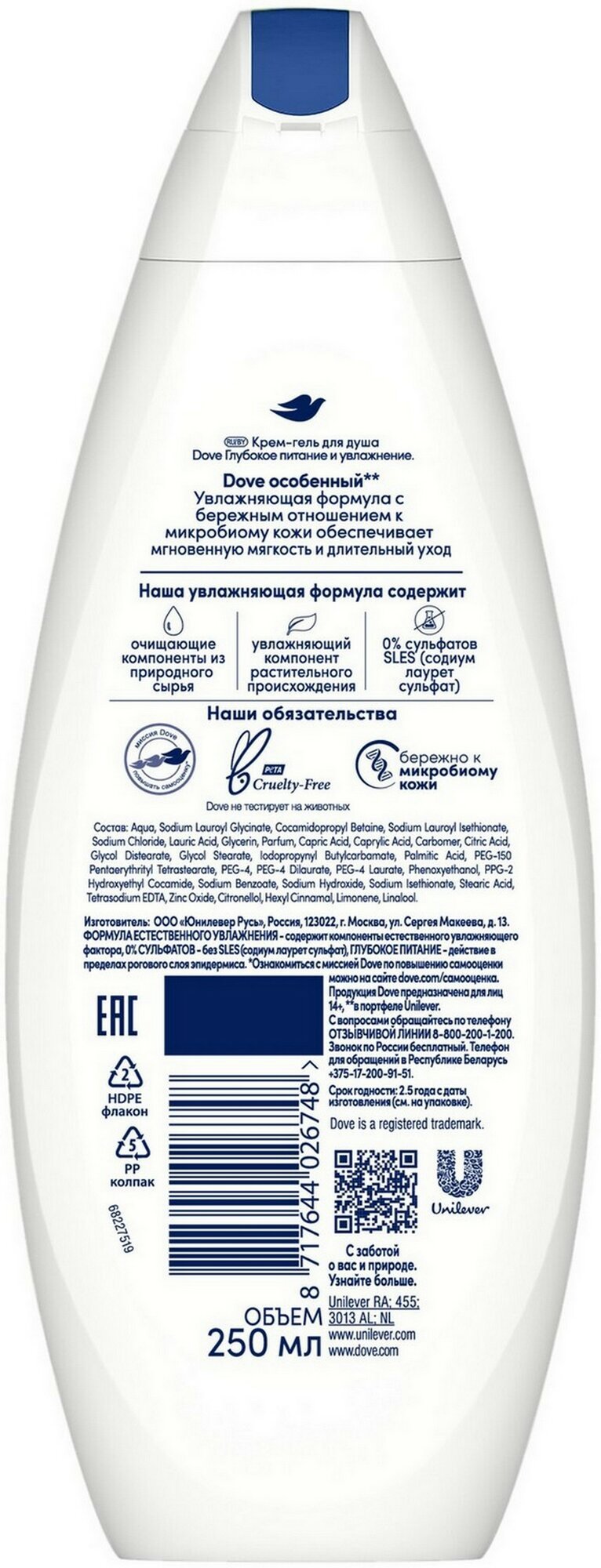 Dove бессульфатный крем-гель для душа Глубокое питание и увлажнение 250 мл - 1 шт