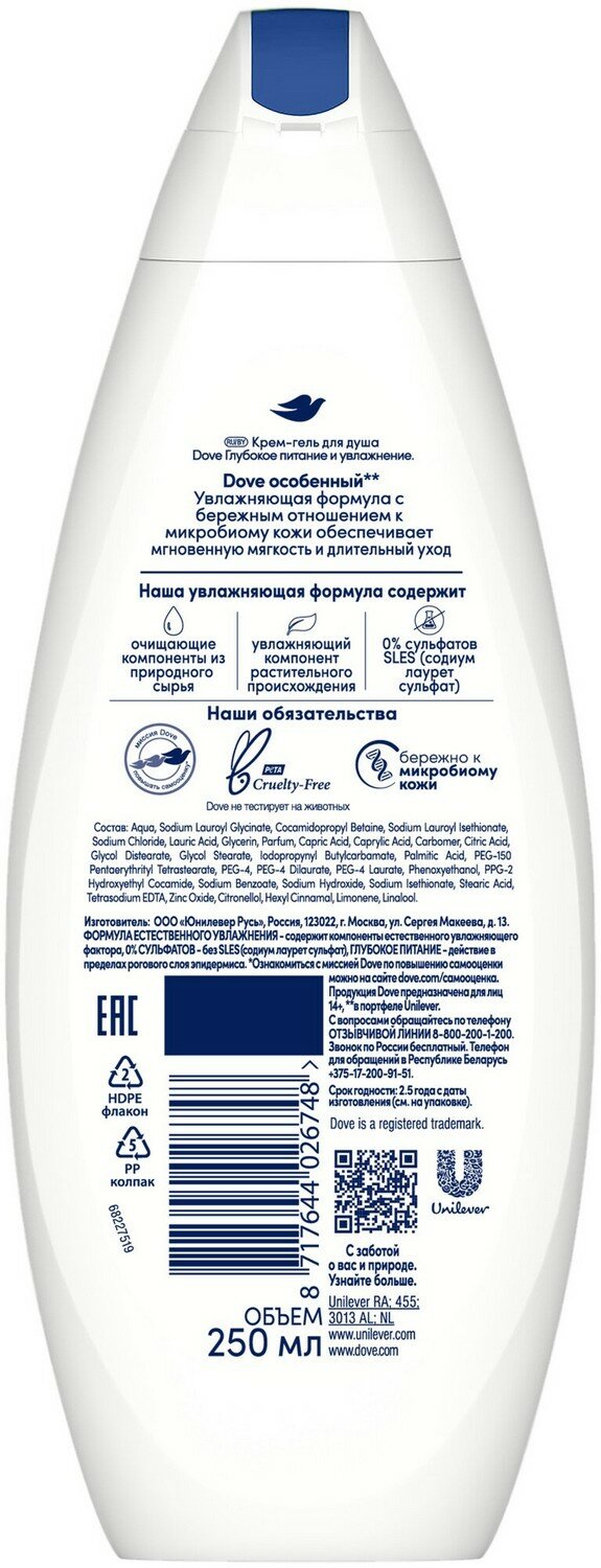 СохранитьDove бессульфатный крем-гель для душа Глубокое питание и увлажнение 250 мл - 1 шт интересное: