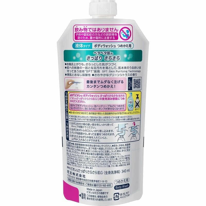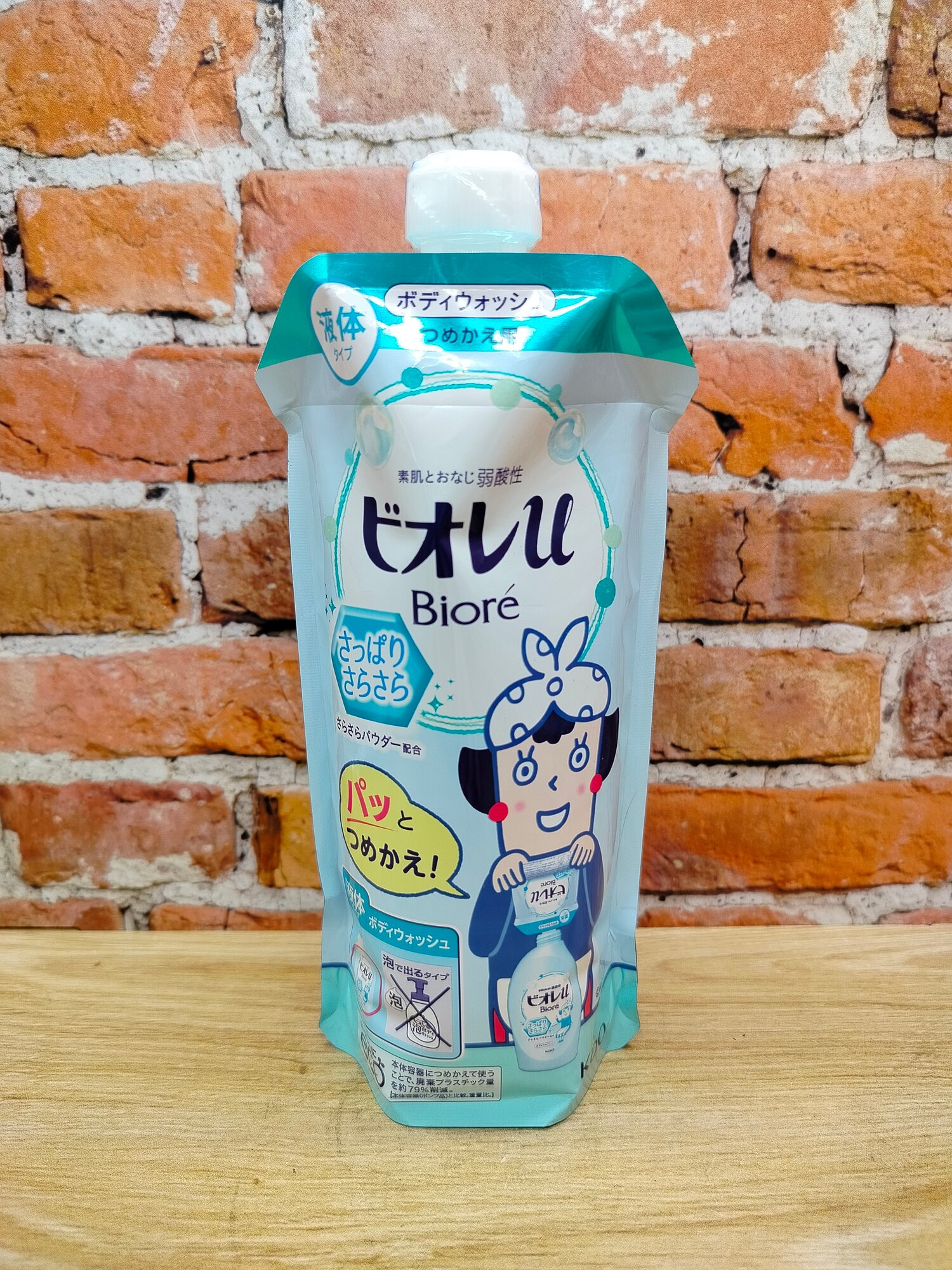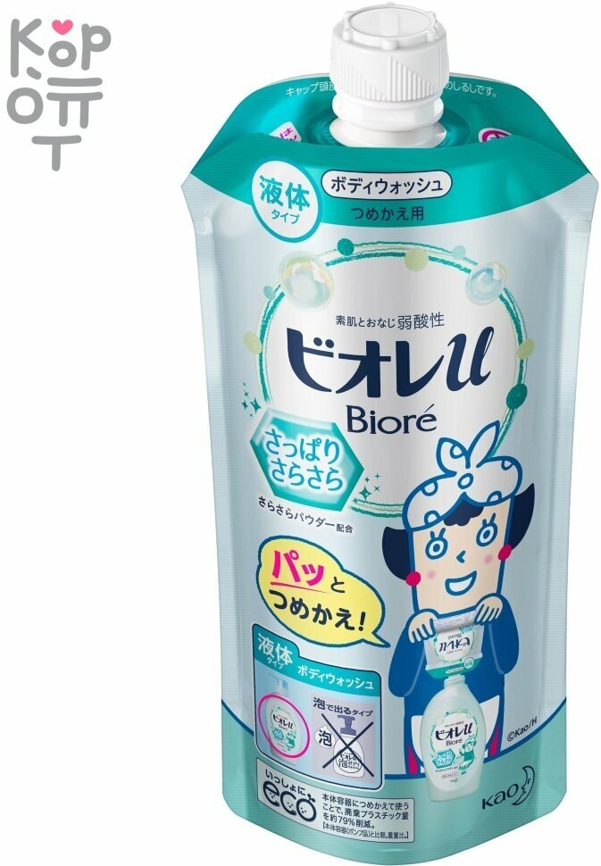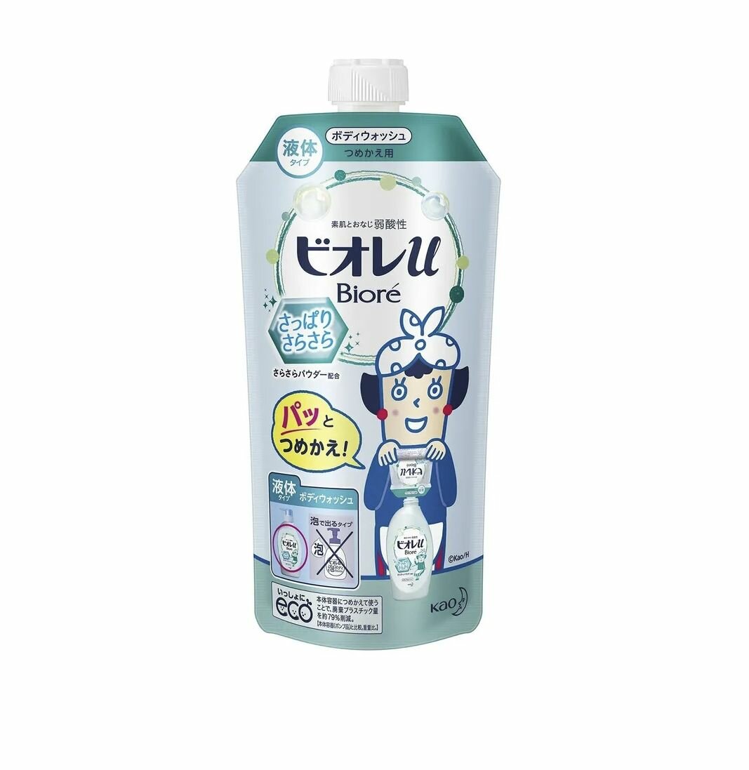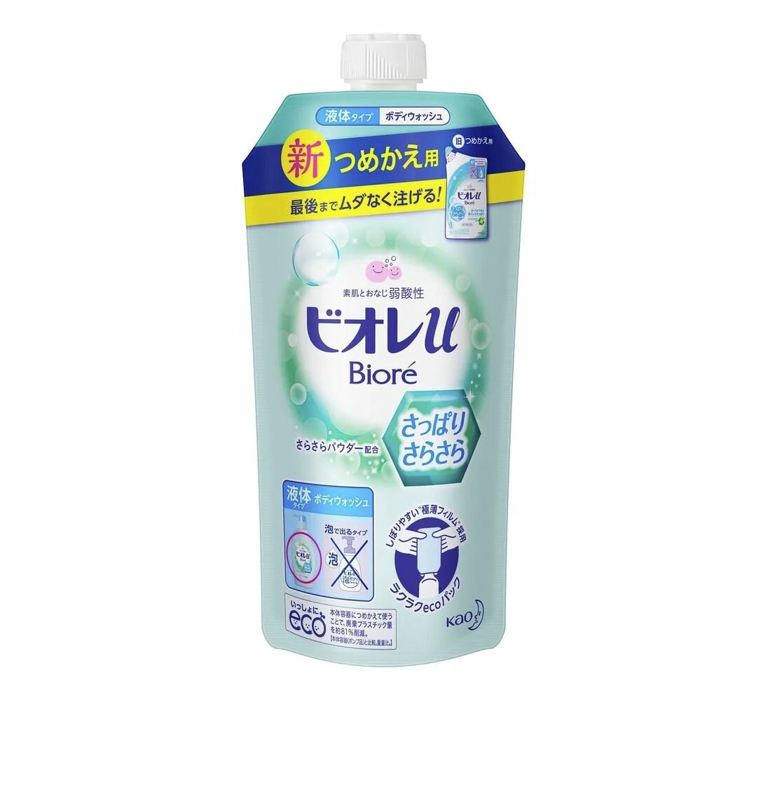 KAO Жидкое мыло гель для тела Biore U Refreshing Smooth с шелковистой пудрой и освежающим ароматом зеленых цитрусов, запасной блок 340мл.