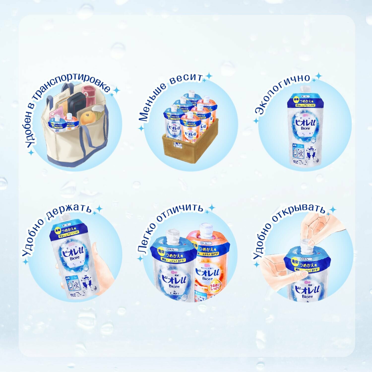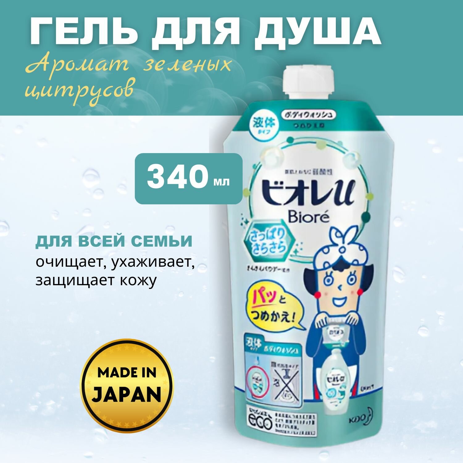 Купить KAO Гель для душа Biore Гладкость шелка кремовый с ароматом свежей зелени и цитрусовых, 340 мл. сменная упаковка
