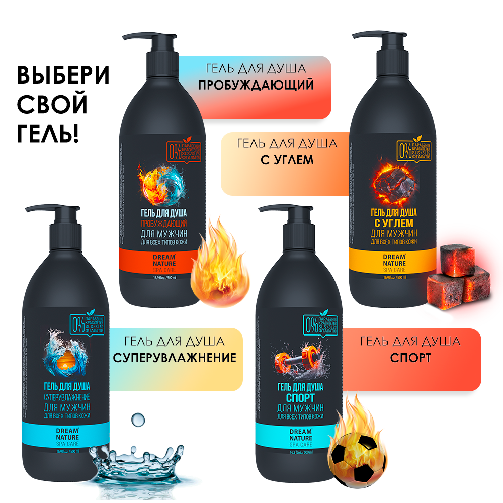 Гель для душа "С углем" мужской Dream Nature SPA&Care, 500 мл