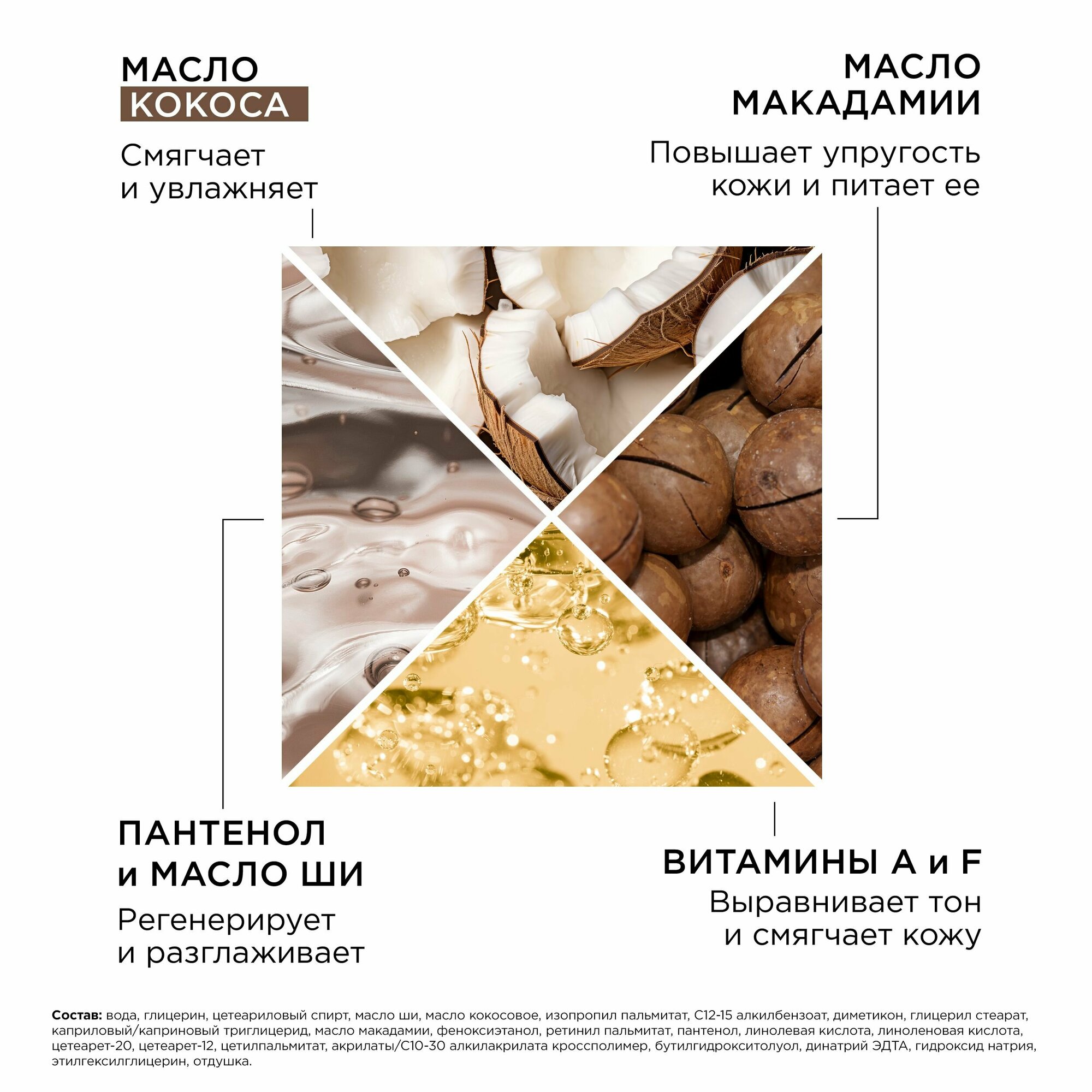 | Состав | Вода, Глицерил Стеарат (и) Цетеарет-20 (и) Цетеарет-12 (и) Цетеариловый Спирт (и) Цетил Пальмитат, Масло Сладкого Миндаля, Каприлик/Каприновый Триглицерид, Пропандиол, Пропиленгликоль, Пропилгептил Каприлат, Масло Ши, Ксантановая Камедь, Лецитин, Склеротиновая Камедь, Пуллулан, Акрилат/C10-30 Алкил Акрилатный Кроссполимер, Каприлгидроксаминовая Кислота, 1,2-Гександиол, Экстракт Орхидеи, Экстракт Готу Колы, Экстракт Ванили, Экстракт Апельсина, Экстракт Миндаля, Экстракт Пиона, Бензиловый Спирт, Этилгексилглицерин, Токоферол, Бензотриазолил Бутилфенолсульфонат Натрия, Бутет-3, Трибутил Цитрат, Пентаэритритил Тетра-ди-трет-бутил Гидроксигидроциннамат, Гидроксид Натрия, Парфюмерная Композиция, Бензоат Натрия, Сорбат Калия, CI 14720, CI 42090. |
