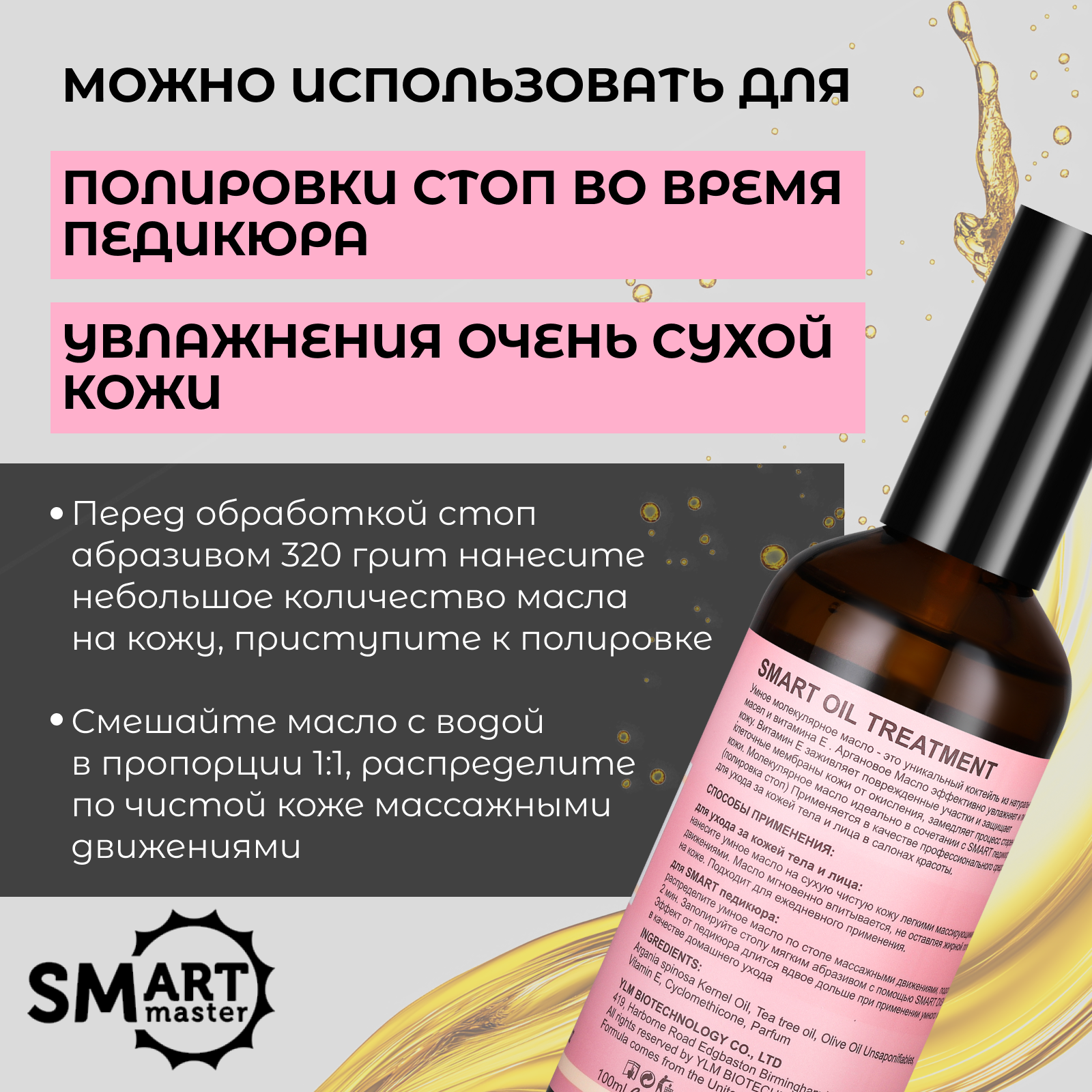 Молекулярное масло смарт мастер 100 мл для кожи, тела, лица, рук, ног и ногтей Bio для маникюра и педикюра oil лечебное Smart Master Parfum парфюм