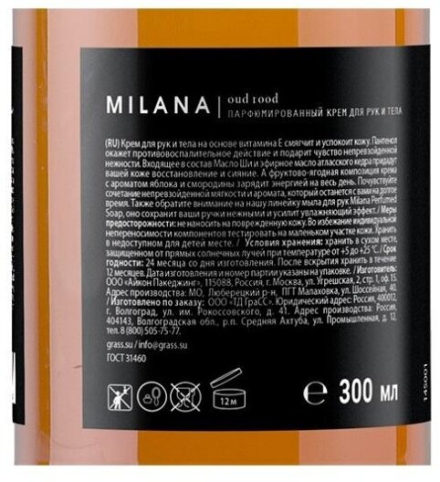 Купить Крем для ухода за кожей Grass Milana Oud Rood, парфюмированный, для рук и тела, 300 мл