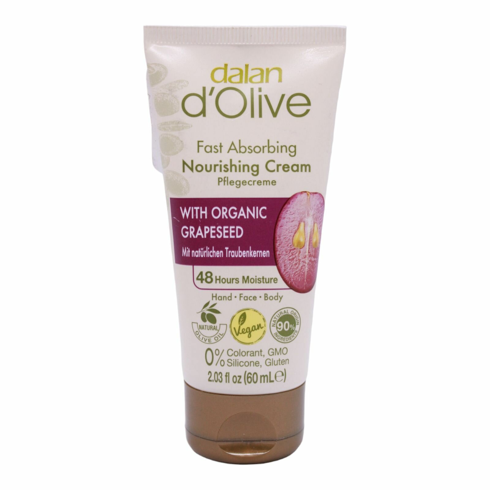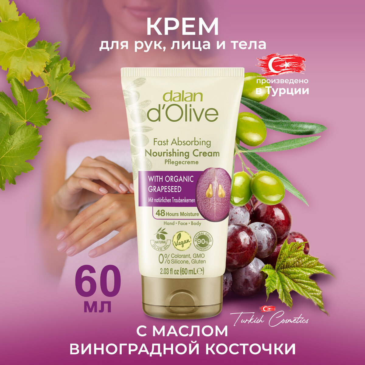 Крем для лица, рук и тела Dalan D'Olive, с маслом оливы и косточек винограда, увлажняющий, 60мл