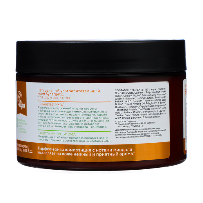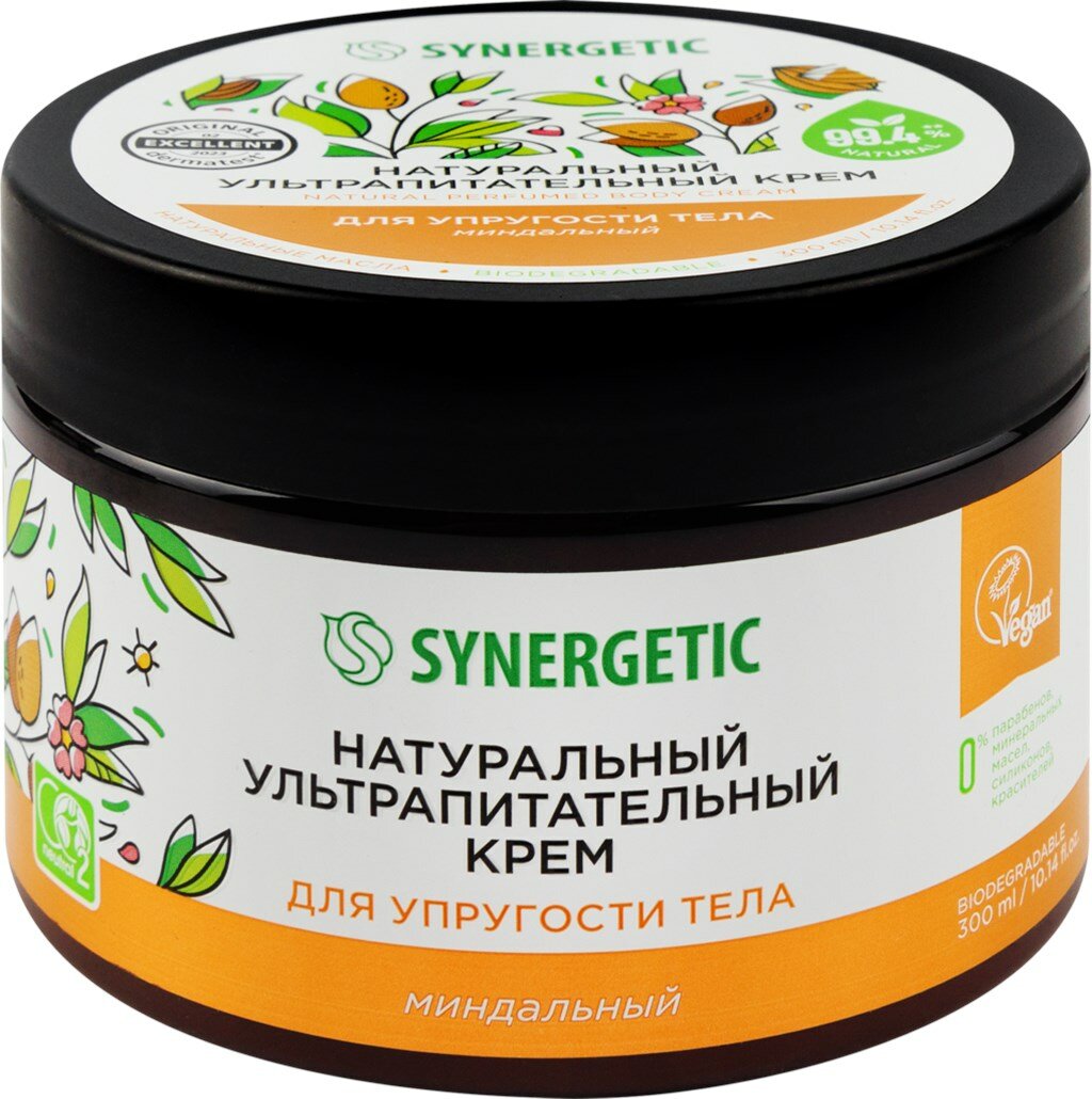 Крем для тела SYNERGETIC Миндальный, ультрапитательный для упругости тела, 300мл