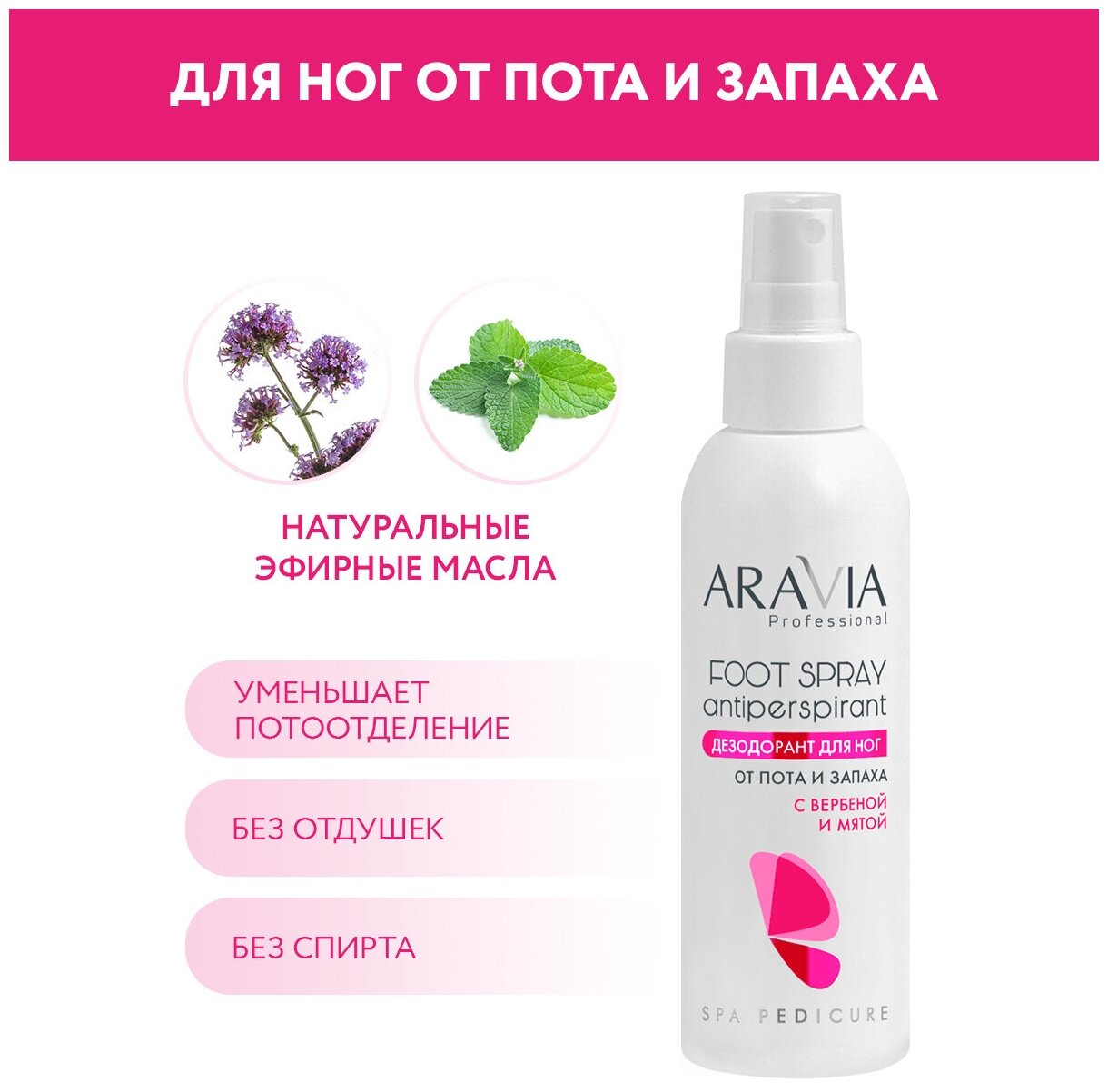 ARAVIA Дезодорант для ног от пота и запаха с вербеной и мятой, 150 мл