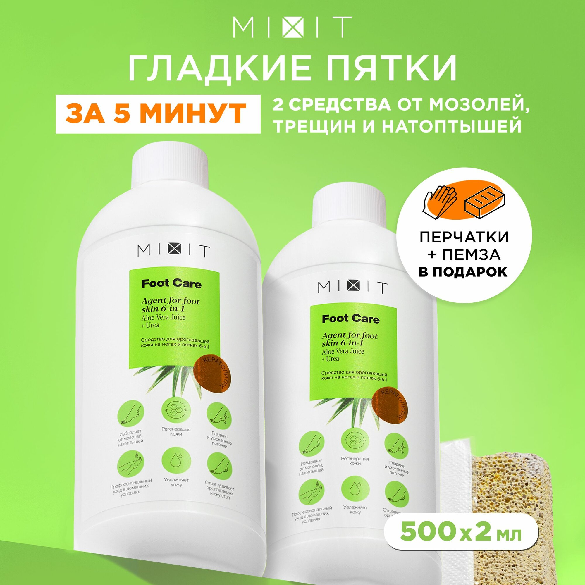 Отшелушивающий кератолитик для пяток ног и педикюра против трещин и мозолей с мочевиной и алоэ вера MIXIT FOOT CARE, 2 шт. 1000 мл интересное: