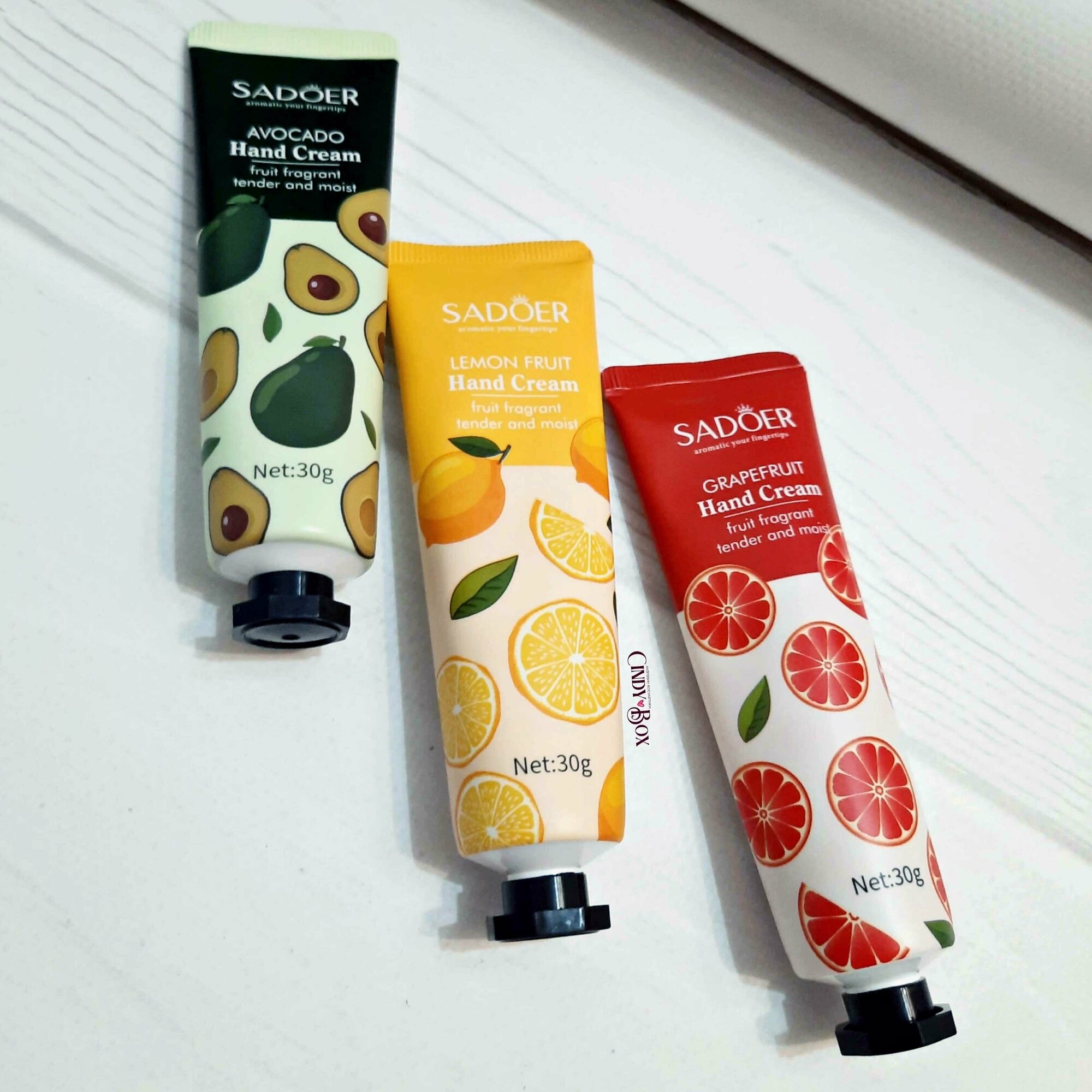 Набор увлажняющих кремов для рук Sadoer экстракт грейпфрута 30 гр+экстракт лимона 30 гр+авокадо 30гр
