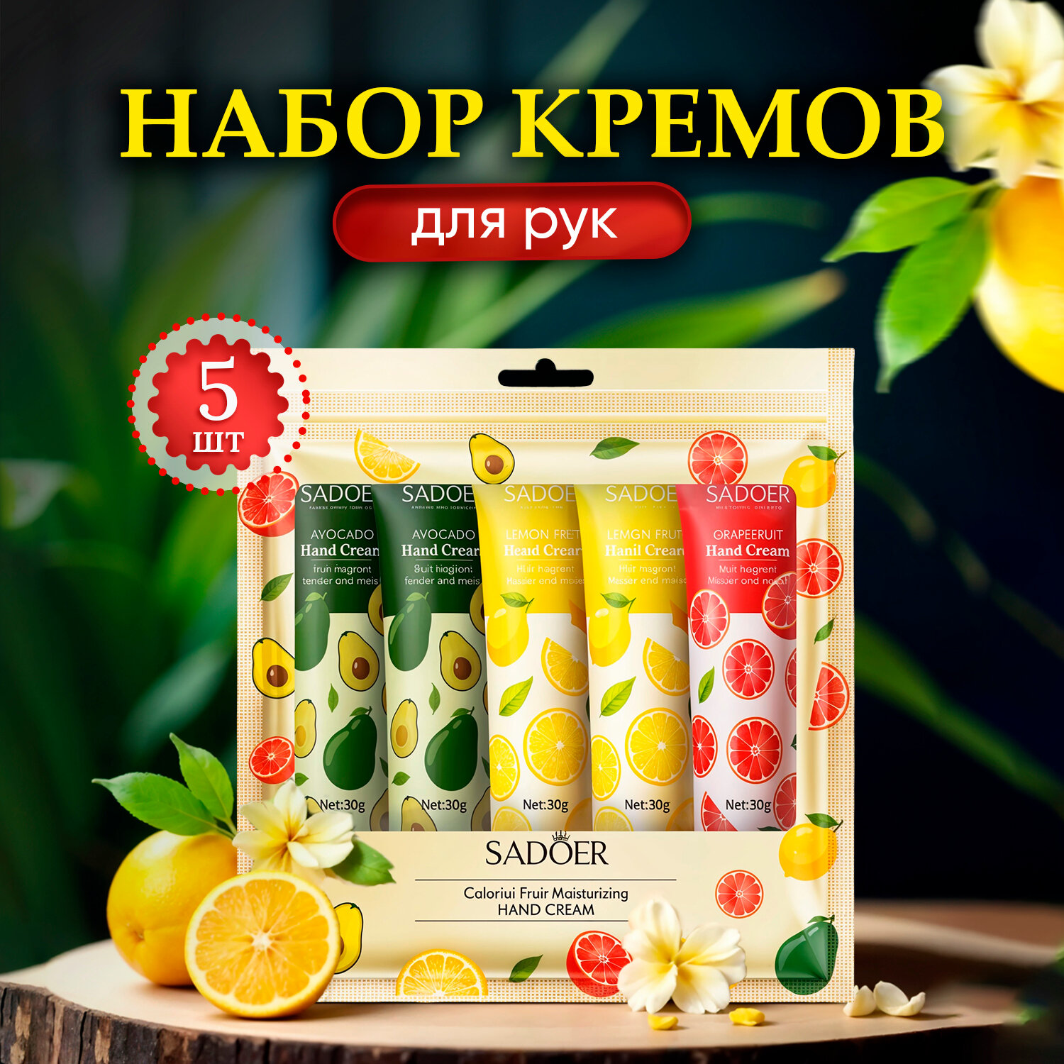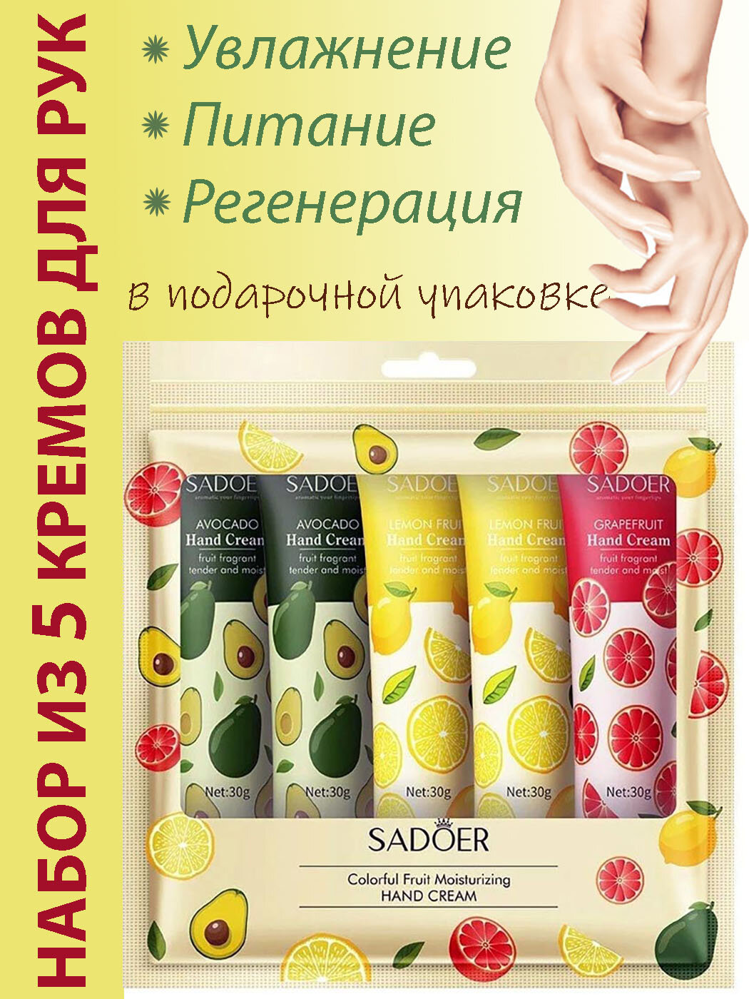 Набор кремов для рук SADOER авокадо и цитрусы 5 в 1