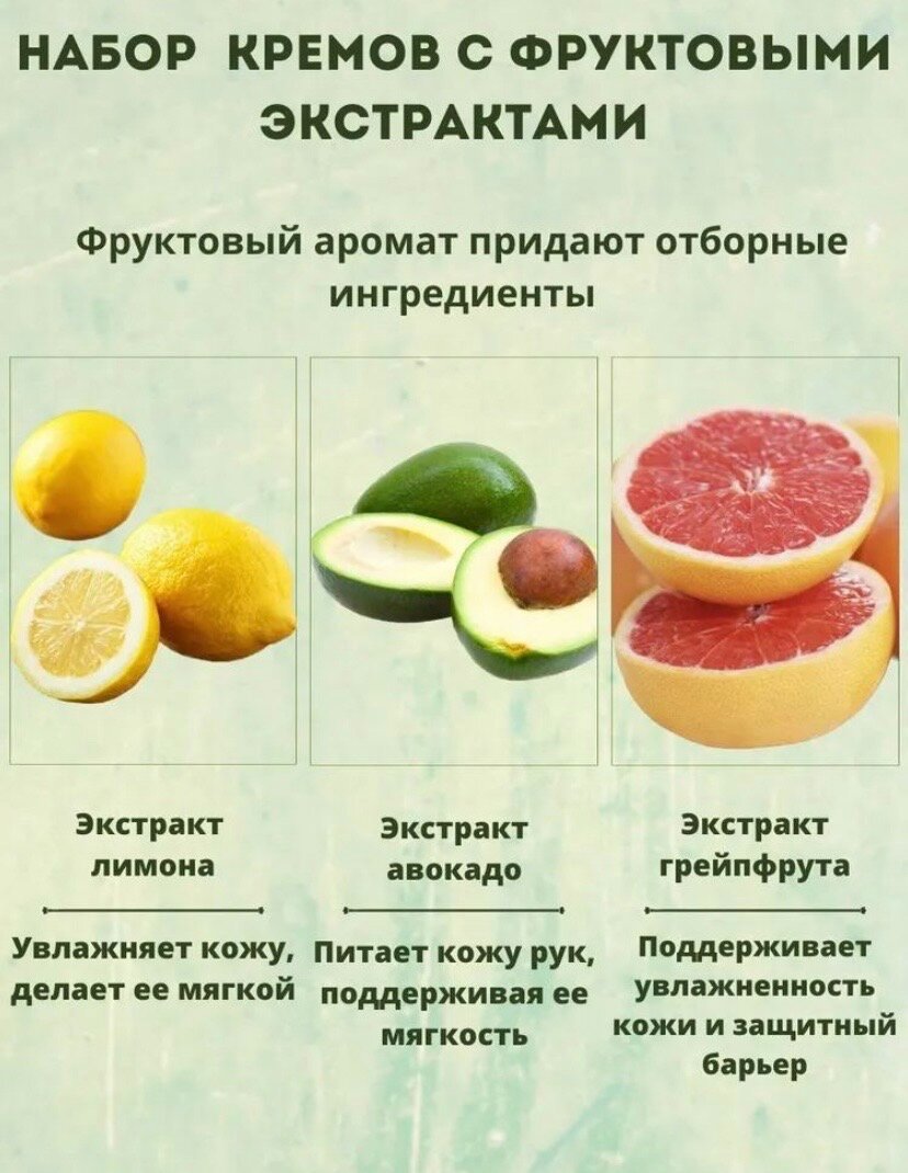 Набор увлажняющих фруктовых кремов для рук Sadoer лимон, авокадо, грейпфрут 5 шт. по 30 гр.
