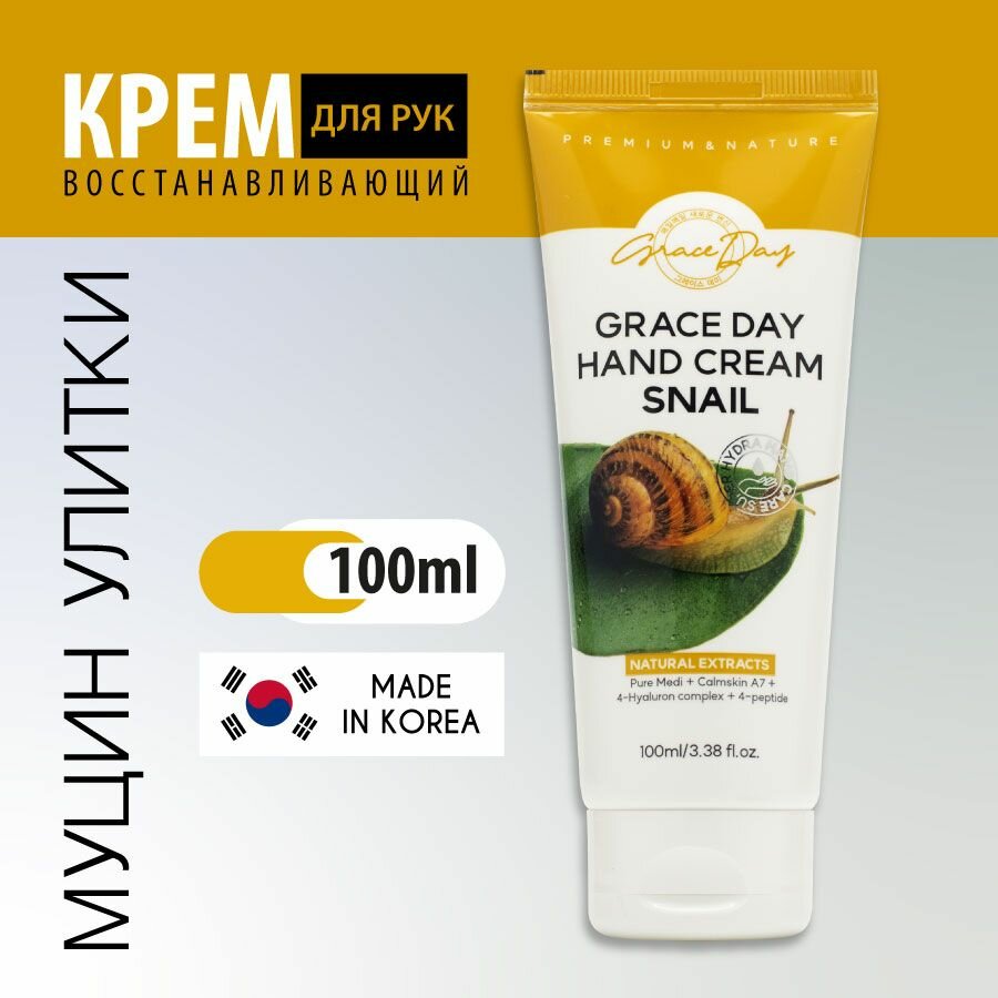 Grace Day Крем для рук, Hand cream snail, восстанавливающий, с муцином улитки, 100 мл