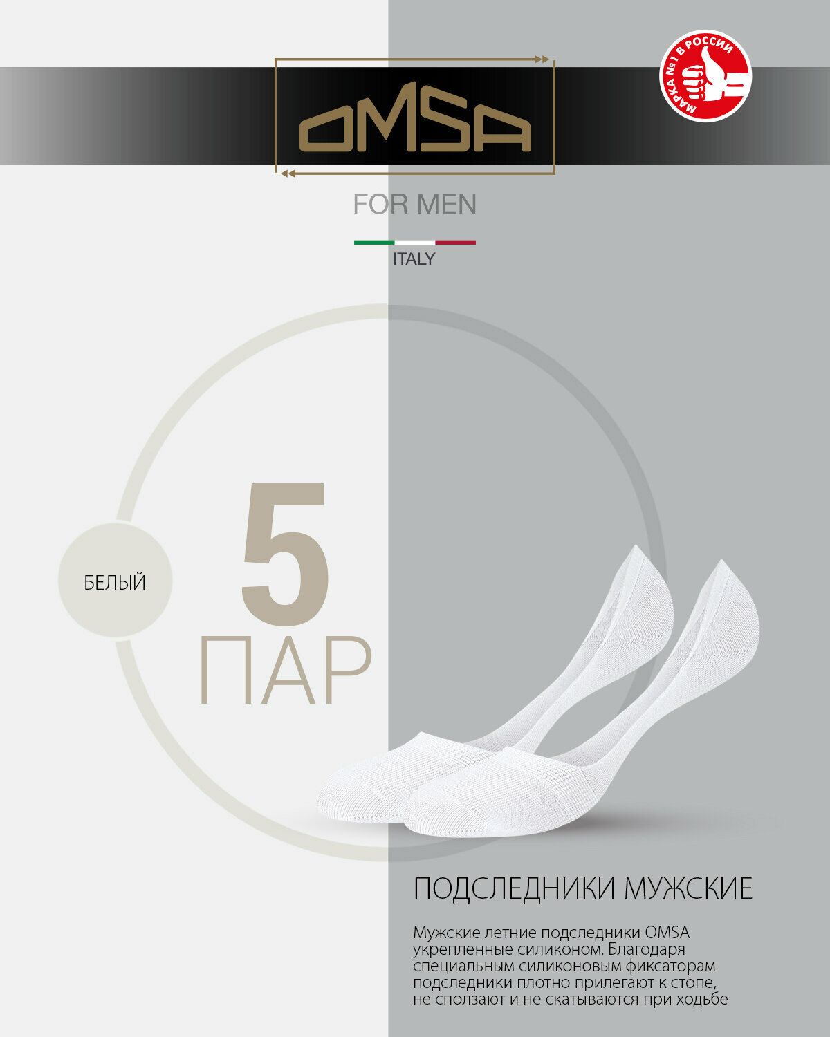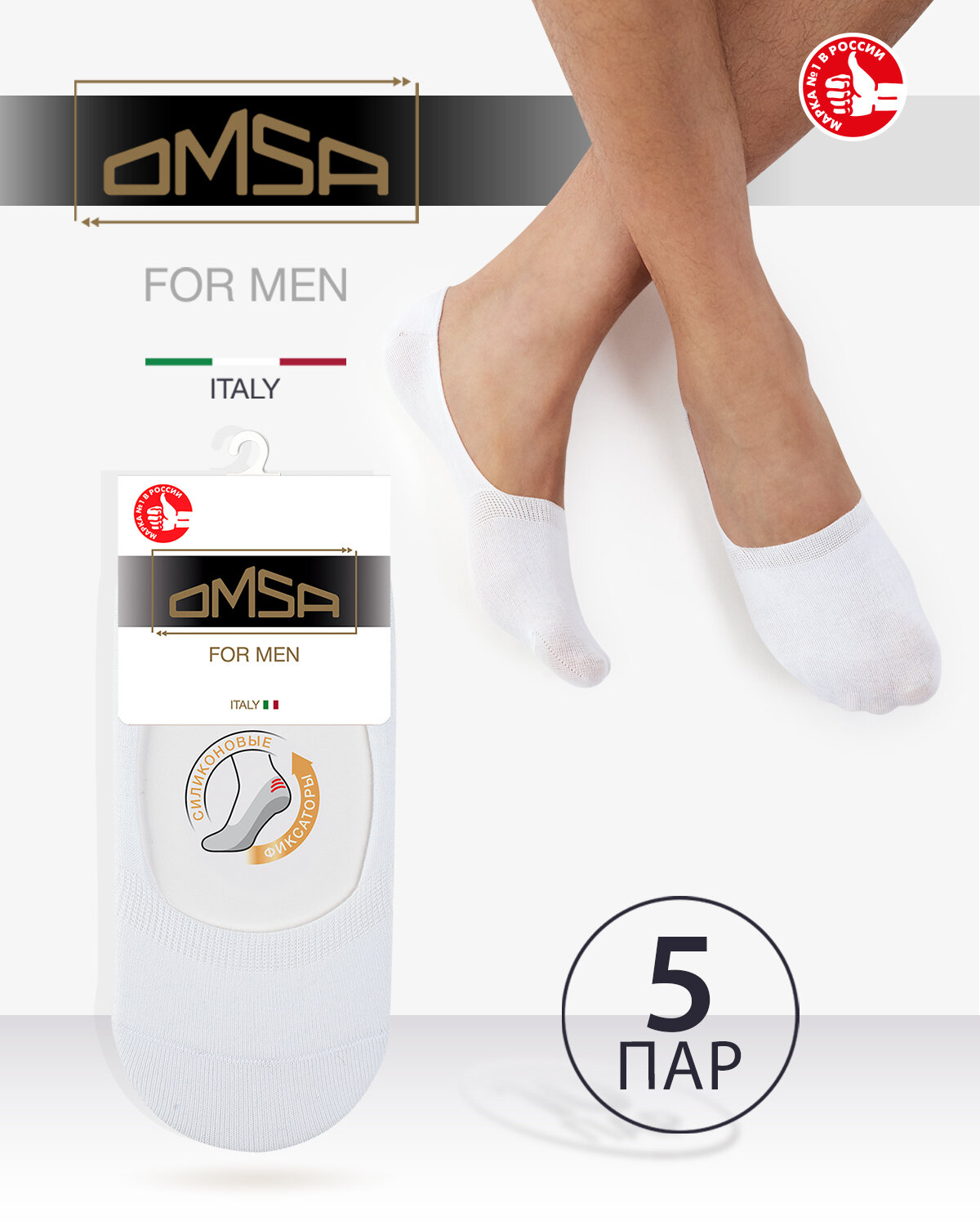 Носки мужские OMSA ACTIVE 101 хлопок (подследники) Bianco 45-47. Комплект 5 шт